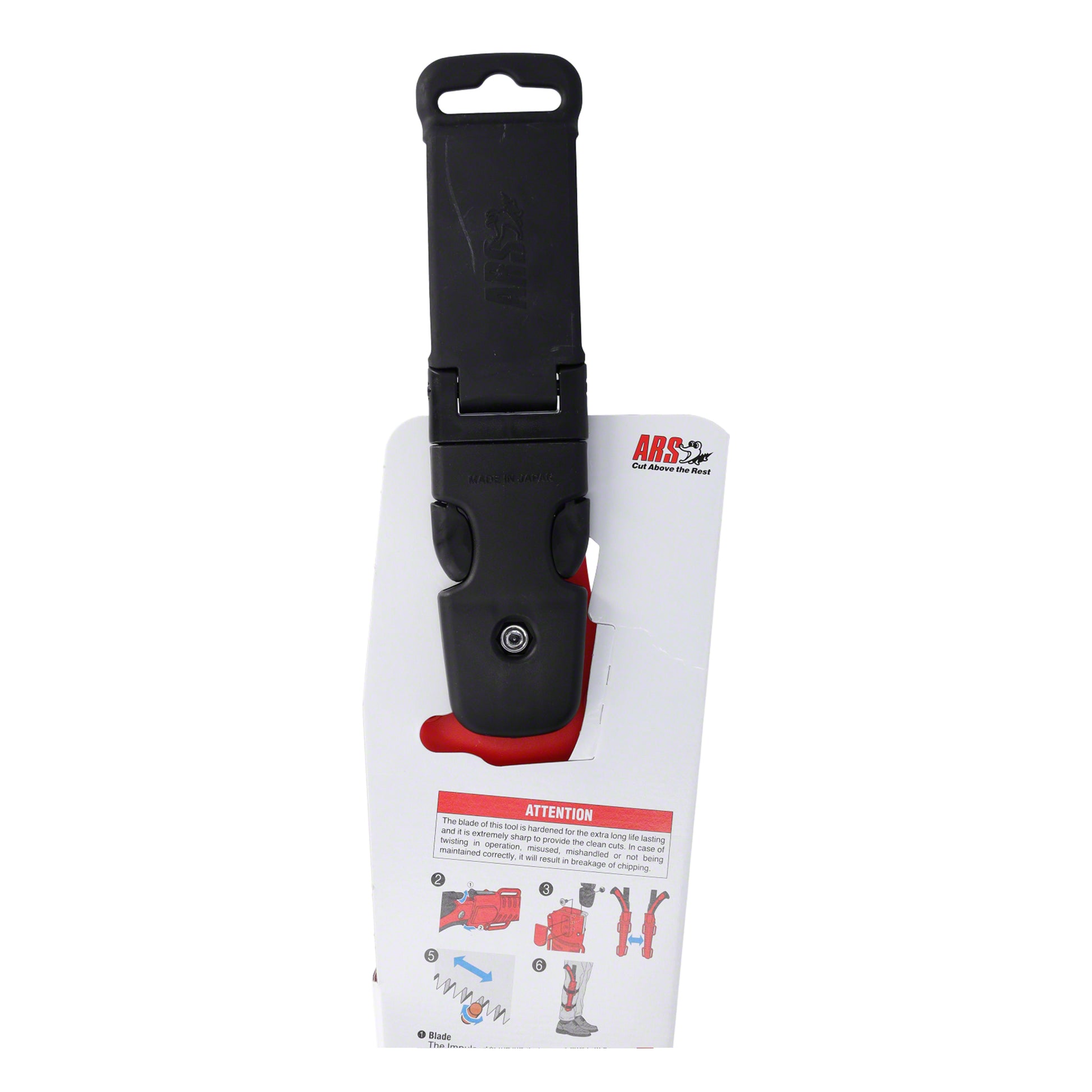 ARS Handsäge CAM-24PRO Große Ausführung der CAM-18PRO. Ergonomische Handsäge mit gummiertem Handgriff, impulsgehärtetem hartverchromtem Sägeblatt mit Kunststoffköcher, inkl. Gleitrolle und seitlich wechselbarer Gürtelschlaufe. ARS-Sägen haben im Gegensatz zu herkömmlichen Sägen, deren Zähne gefeilt und abwechselnd gebogen sind, dreifach präszisionsgeschliffene Zähne mit rasiermesserscharfen Schneiden. Die UV-Zahnform erzeugt superglatte und saubere Schnittflächen. Die ARS-Sägeblätter sind am Rücken dünner geschliffen, dadurch gleiten die Sägen durch Zugbewegungen ohne nennenswerte Anstrengungen durch alle Arten von Holz, Kunststoff oder Knochen Grün- und Trockenastung von Nadelholz, feineren Laubholzarten sowie für sehr saubere Pflegeschnitte an Obst- und Ziergehölzen. 4 mm und Räumer/ 4,5 mm und Räumer: Für die Grünastung von Nadelholz und Laubholz sowie für stärkere Pflegeschnitte an Obst- und Ziergehölzen. Zahnung 4 und 5,2 mm Für starke Pflegeschnitte in Forstkulturen, Obstplantagen und im Gartenbau. Alle ARS-Sägen haben den patentierten rasiermesserscharfen Dreifachschliff mit den seitlichen und unteren Schneidekanten