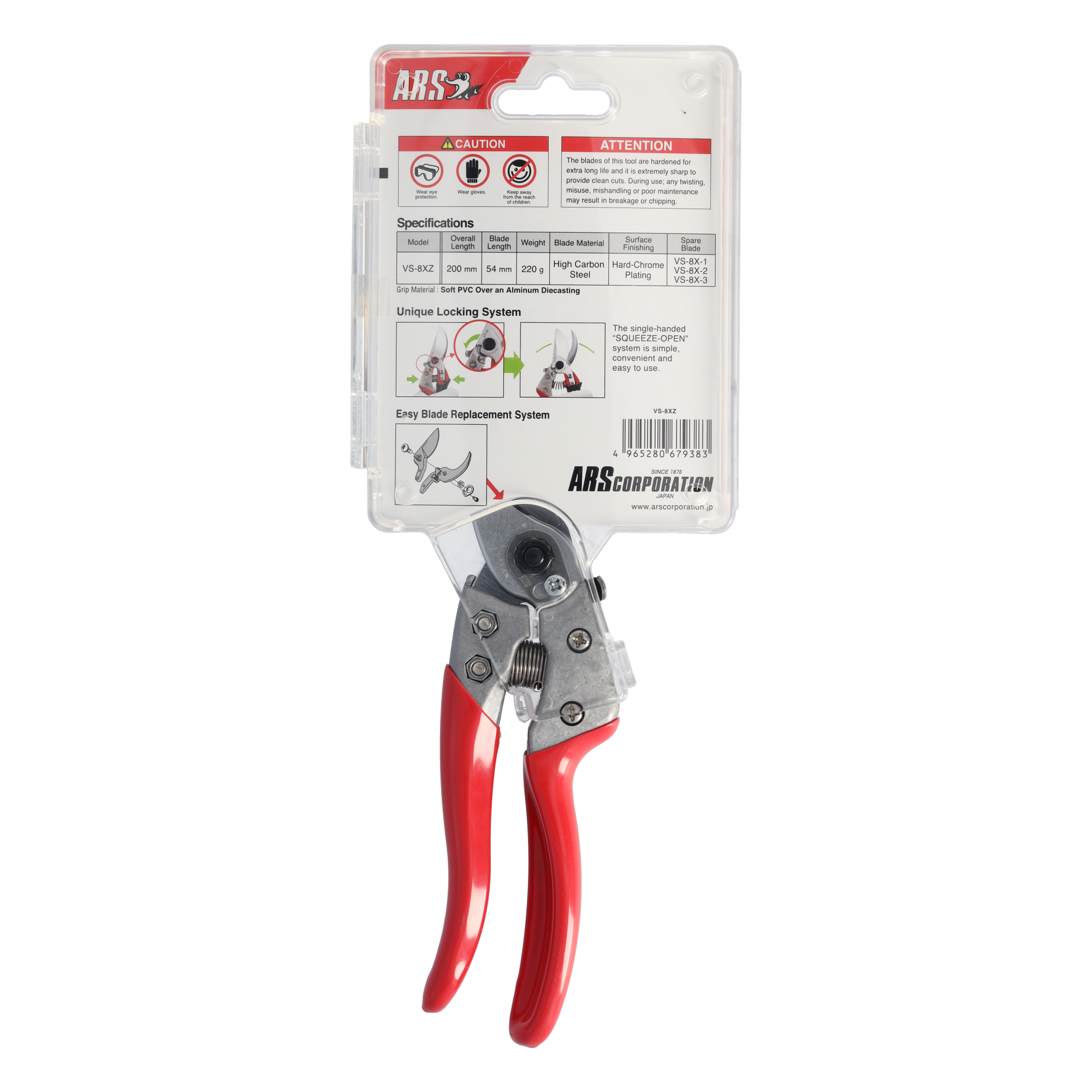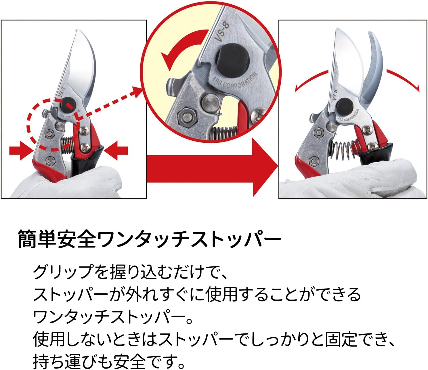 ARS Profi-Gartenschere VS-8XZ | rasiermesserscharfer Klinge | Einhandverriegelung | gummierte Griffe | Klinge austauschbar