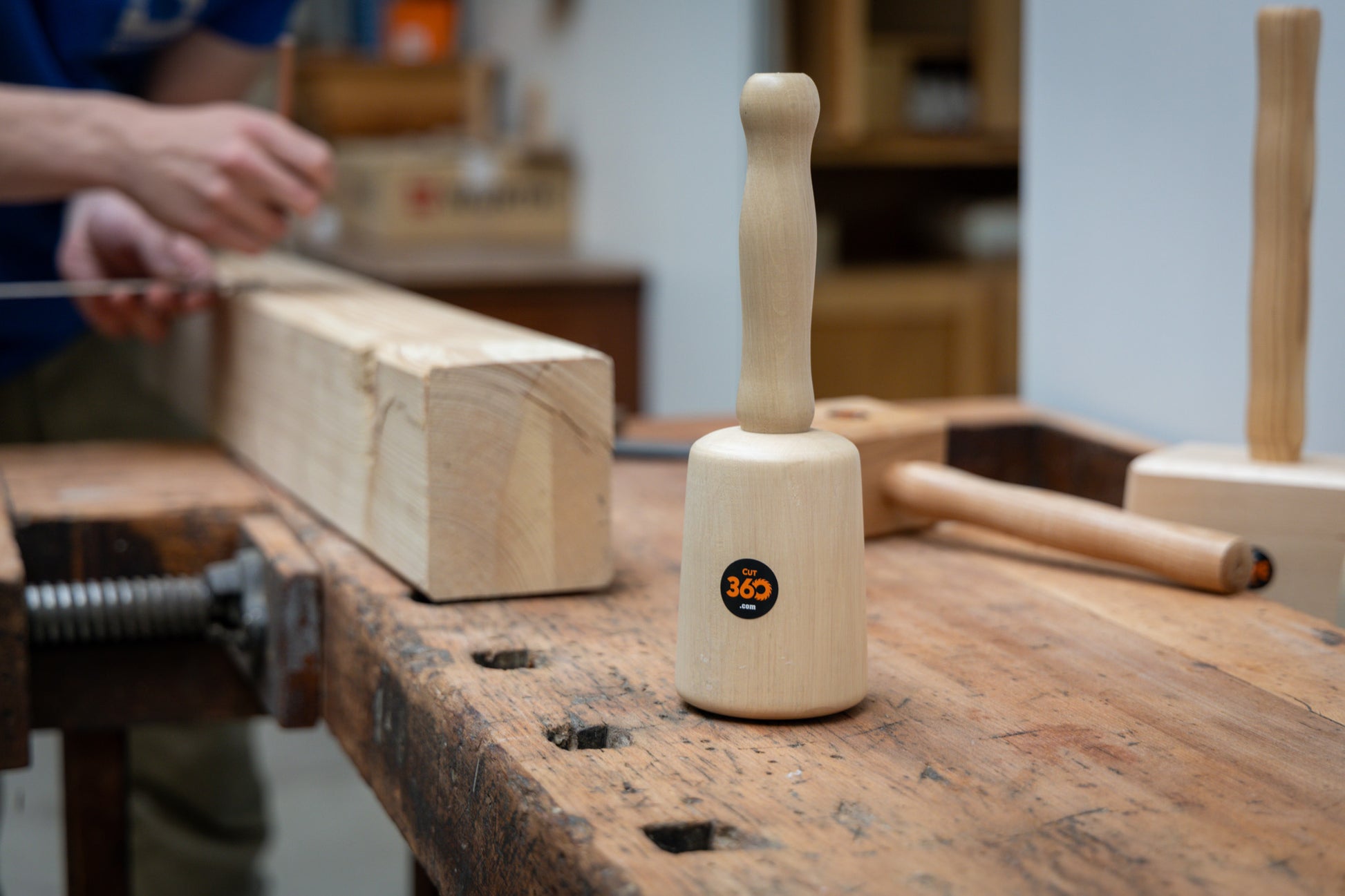 Erleben Sie die Exzellenz des Cut360 Bildhauerklüpfels das ideale Werkzeug für Holz- und Steinbildhauer, Steinmetze, Natursteinmechaniker, Tischler und Zimmerer. Mit der konischen Form und rundumweisender Schlagfläche bietet dieser Klüpfel Präzision und Vielseitigkeit für Ihre Holzbearbeitungen. Der kegelförmige Kopf, aus hochwertiger Weißbuche gefertigt, ermöglicht äußerst präzise Schläge von der Basis bis zum oberen Ende. Der breitere Teil erlaubt mühelose grobe Arbeiten, während das schmalere Ende perfekt für feinste Details geeignet ist. Der Holzgriff wurde sorgfältig gefertigt, um optimale Kontrolle und Handhabung zu gewährleisten, dabei wird das Einwirken eines axialen Drehmoments auf Unterarm oder Hand vermieden. Mit einem Durchmesser von 80 mm ist der Bildhauerklüpfel optimal für präzise Arbeiten an Material und Werkstück dimensioniert. Der Holzhammer, in der Holzbearbeitung weit verbreitet, minimiert aufgrund seiner weichen Oberfläche das Risiko von Materialbeschädigungen im Vergleich zu einem Metallhammer. Ideal für Zimmermannsarbeiten, Möbelbau und andere Holzbearbeitungsprojekte. Zusätzlich eignet sich der Klüpfel hervorragend zum Festklopfen von Leimfugen, Rundstäben, Stemmeisen und Beitel; zudem ist er eine praktische Ergänzung für Campingaktivitäten. Schützen Sie sich während Ihrer kreativen Prozesse mit empfohlenen Schutzbrillen und Handschuhen, um Verletzungen zu vermeiden. Der Cut360 Bildhauerklüpfel ermöglicht nicht nur das Entfernen von Material, sondern auch das Gestalten von Formen und Glätten von Oberflächen alles für die Kreation Ihrer gewünschten Skulpturen und Reliefarbeiten. Tauchen Sie ein in die Welt der Holzbearbeitung mit diesem hochwertigen, konisch geformten Klüpfel und erleben Sie handwerkliche Perfektion.