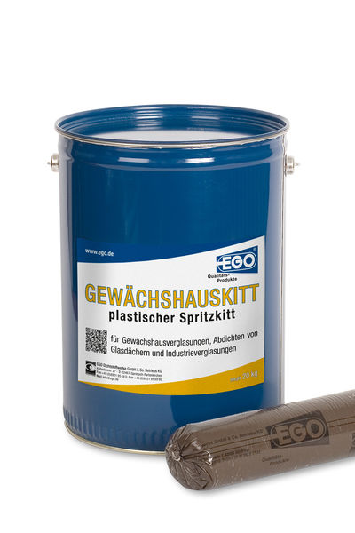 EGO GEWÄCHSHAUSKITT SPRITZKITT Gewächshauskitt zur Glasabdichtung Auf Grund seiner hochwertigen Rohstoffe gewährleistet der EGO GEWÄCHSHAUSKITT ein dauerplastisches Verhalten und eine gute Haftung auf Glas, Metall, Farben u. anderen Untergründen. Bestens geeignet für die einfache und preisgünstige Gewächshausverglasung und Abdichtung von Glasdächern sowie Industrieverglasung. EGO GEWÄCHSHAUSKITT ist ein plastischer, anstrichfreier Spritzkitt. Anwendungsbereiche Gewächshäuser, Industriedächer Das Produkt zeichnet sich durch folgende Eigenschaften aus: asbestfrei bitumenfrei teerfrei weichmacherfrei mineralölfrei lösemittelfrei volumenbeständig neigt nicht zu Rissbildung gut zu verarbeiten wird nicht von Wasser hinterwandert