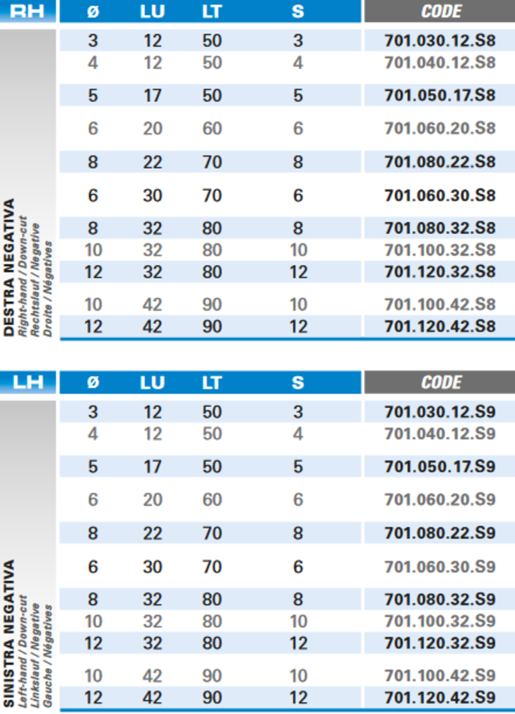 EINZAHNSCHLICHTFRÄSER Vollhartmetall Rechtslauf oder Linkslauf Negativ