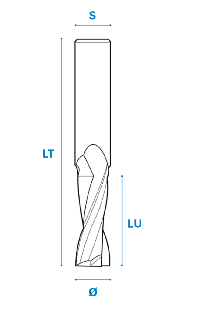 EINZAHNSCHLICHTFRÄSER Vollhartmetall Rechtslauf oder Linkslauf Schneide 2 Positiv