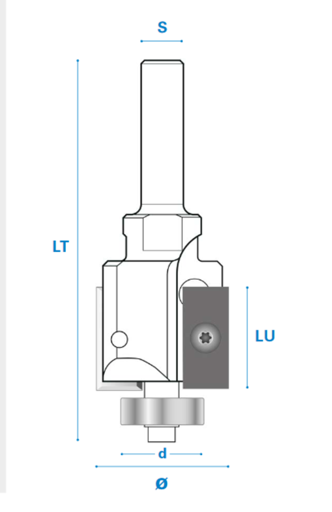 Falzfräser mit Kugellager und Wendemesser - Hartmetall Rechtslauf Schneide 2