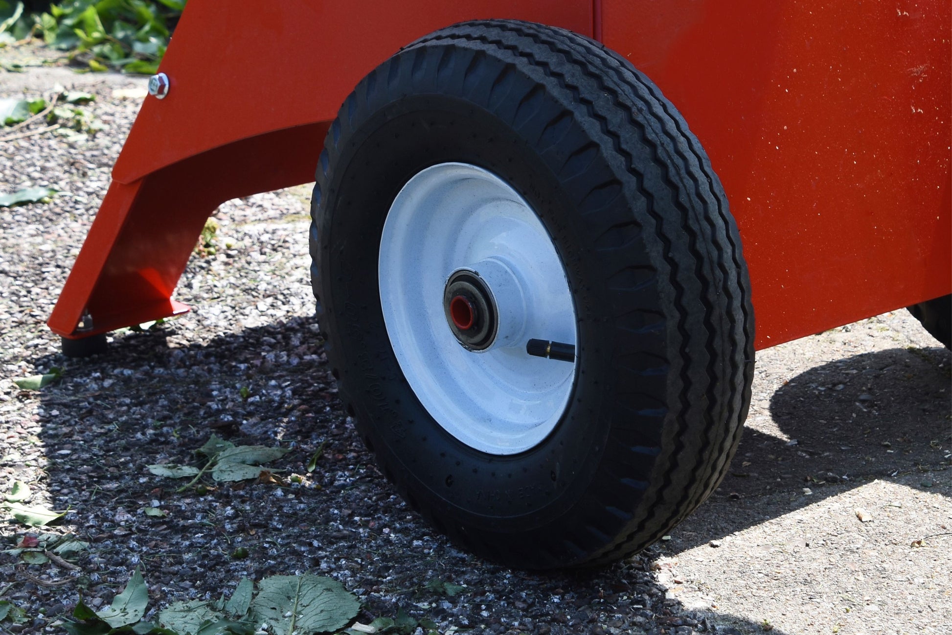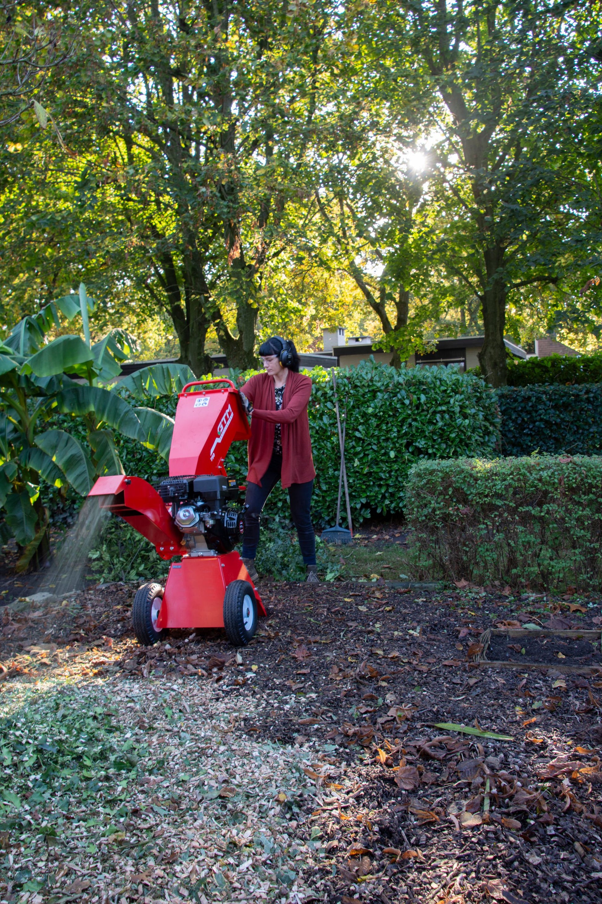 Der 750 hat die gleichen kompakten Abmessungen wie der 600, aber noch mehr Kapazität durch ein breiteres und schwereres Rotorsystem. Der Häcksler ist mit einem starken 9 PS Loncin Motor und direktem Getriebe zum Häckselsystem ausgestattet. Äste bis 7 cm werden automatisch eingezogen und mühelos zerkleinert, wodurch ein schöner häckselgut entsteht. Das zerkleinerte Material ist ideal als Bodendecker oder Hinterfüllung von Beeten und Gartenwegen. Es ist auch möglich, gleichzeitig Blätter und anderes weiches Material in die Maschine zu geben, sodass Gartenabfälle als Mulch oder Kompost wiederverwendet werden können. Bei einer Auswurfhöhe von 77 cm passt problemlos eine Schubkarre darunter, um die Späne aufzufangen. Der Deflektor ist bis zu 60° verstellbar, um die Höhe des ausgeworfenen Materials zu bestimmen. Der 750 ist perfekt ausbalanciert und steht auf einem robusten Rahmen mit zwei Luftreifen. Durch die Doppelhalterungen am Eingang lässt sich die Maschine leicht bewegen. Am Rahmen ist einem Not-Aus montiert, der den Motor in Notsituationen sofort stoppt. Der 750 verfügt außerdem über eine Klappfunktion, in der der Einfuhr nach hinten gekippt werden kann, um Platz bei der Lagerung zu sparen. Außerdem erleichtert die Klappstellung die Wartung der Maschine, z. B. das Auswechseln der Messer.