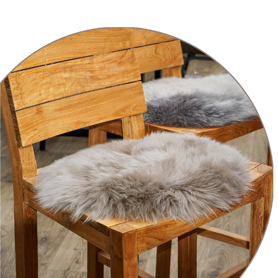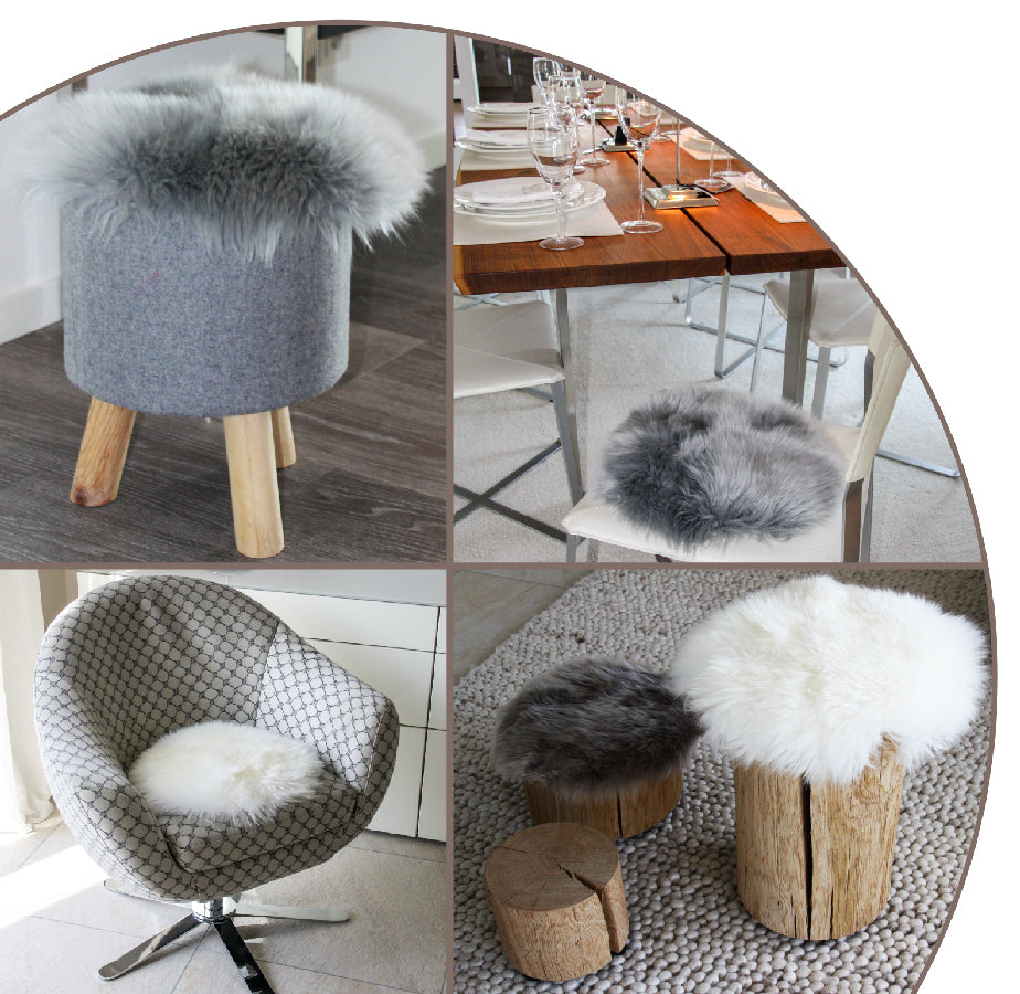 Runde Sitzauflagen: aus australischem Premium Lammfell; Haarlänge ca. 70 mm; Farben frei wählbar laut Farbpalette; können teilweise Nähte haben;