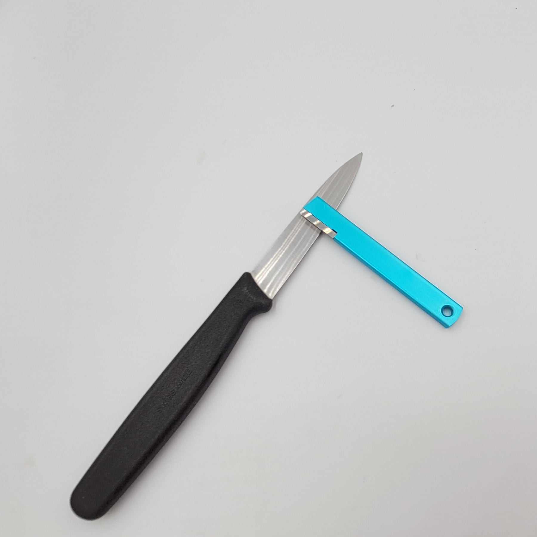 Das einzigartige Schärfgerät für Haushalt und Garten Das Standard Modell ist der kleinste Schärfer im Sortiment. Sei es in der Küchenschublade, in der Werkzeugkiste oder unterwegs in der Hosentasche er findet überall Platz und eignet sich speziell für das Schärfen von kleineren Messern, Scheren und Klingen in der Küche und im Haushalt. Ein unentbehrlicher Begleiter auch für unterwegs. Der Kleine, der in jede Tasche passt. Für kleinere Klingen in Küche und Haushalt. Auch sehr praktisch für unterwegs (Fischen, Jagen, Wandern, Camping). Sehr beliebt auch auch als kleines Mitbringsel oder Werbegeschenk mit eigenem Logo. Schärft in Kürze kleine Messer, gezahnte Messer, Scheren, Huf- und Klauenmesser Der Griff ist aus Aluminium, deshalb leicht und für Werbeaufdrucke bestens geeignet. Hartmetallteil nutzt sich beim korrekten Gebrauch nicht ab. Anleitung: Die geschliffene Kante der Klinge mit EINER Seite sanft abziehen, dabei den bestehenden Winkel berücksichtigen. Beim Schärfen von allen Scherenarten nur die angeschliffene Klinge bearbeiten. Schweizer Produkt Schweizer Technologie Schweizer Qualität
