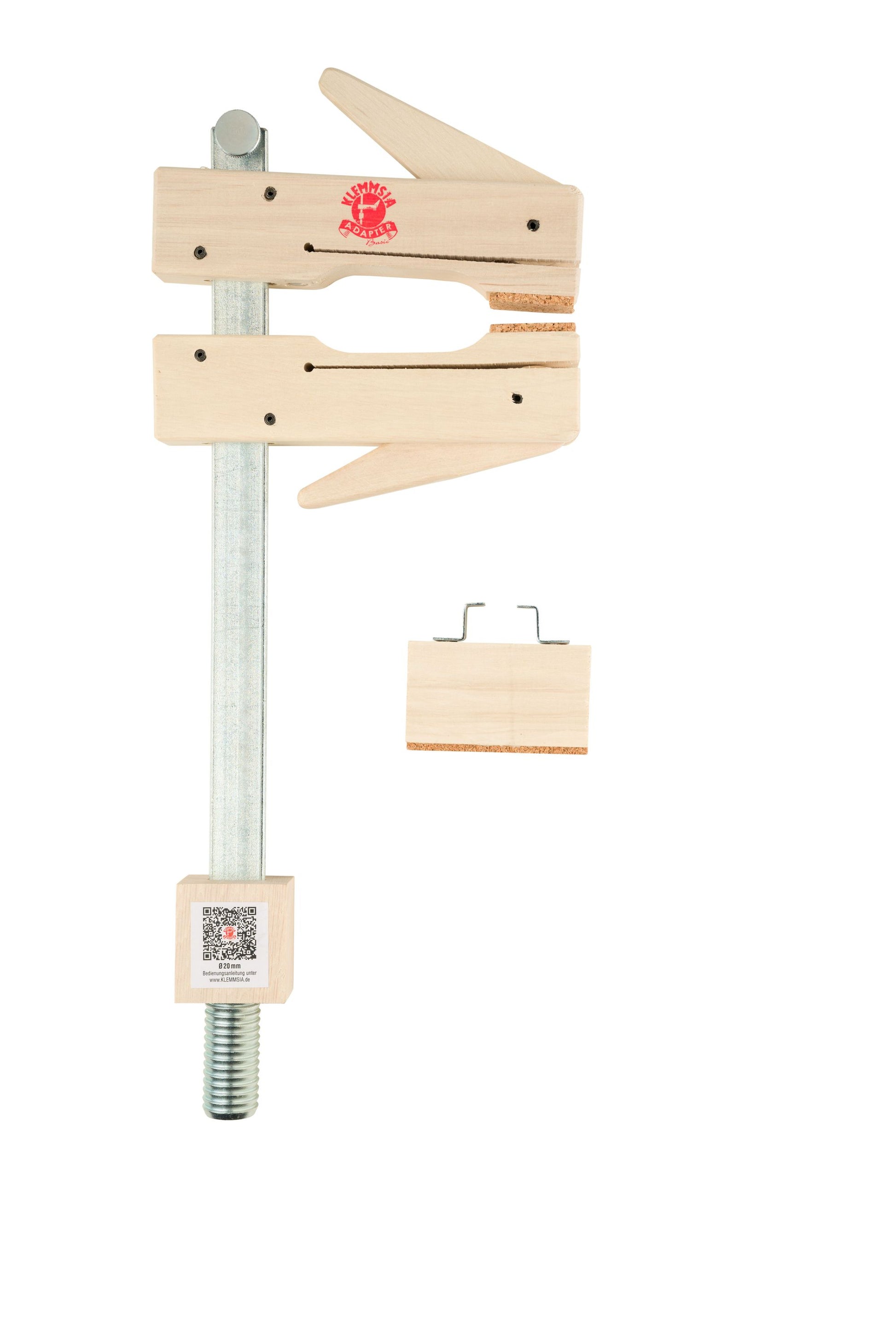 KLEMMSIA® freut sich, ein neues, zusätzliches Produkt anbieten zu können. Um den Bereich der Befestigung von Werkstücken auf Werk- und Hobelbänken ebenso abdecken zu können, wurde der neue KLEMMSIA® Adapter Basic mini entwickelt. Die grundsätzliche Art des schonenden Spannens -wie es von der KLEMMSIA® Holzklemmzwinge bekannt ist- bleibt auch bei der neuen KLEMMSIA® Innovation erhalten. Der Unterschied zum KLEMMSIA® Adapter Basic ist der, dass der Lochzapfen nur 42mm lang ist. Hierdurch kann der Adapter Basic mini auch auf Werkbänken eingesetzt werden, welche im Platz unterhalb der Arbeitsplatte eingeschränkt sind (z.B., wenn dort Schubläden im Weg sind). Die Spannweitenverlängerung ist bei dieser Variante nicht möglich. Diese Variation wird nur durch den speziellen Lochzapfen des KLEMMSIA® Adapter Basic unterstützt, welcher auch als Zubehörteil erhältlich ist.