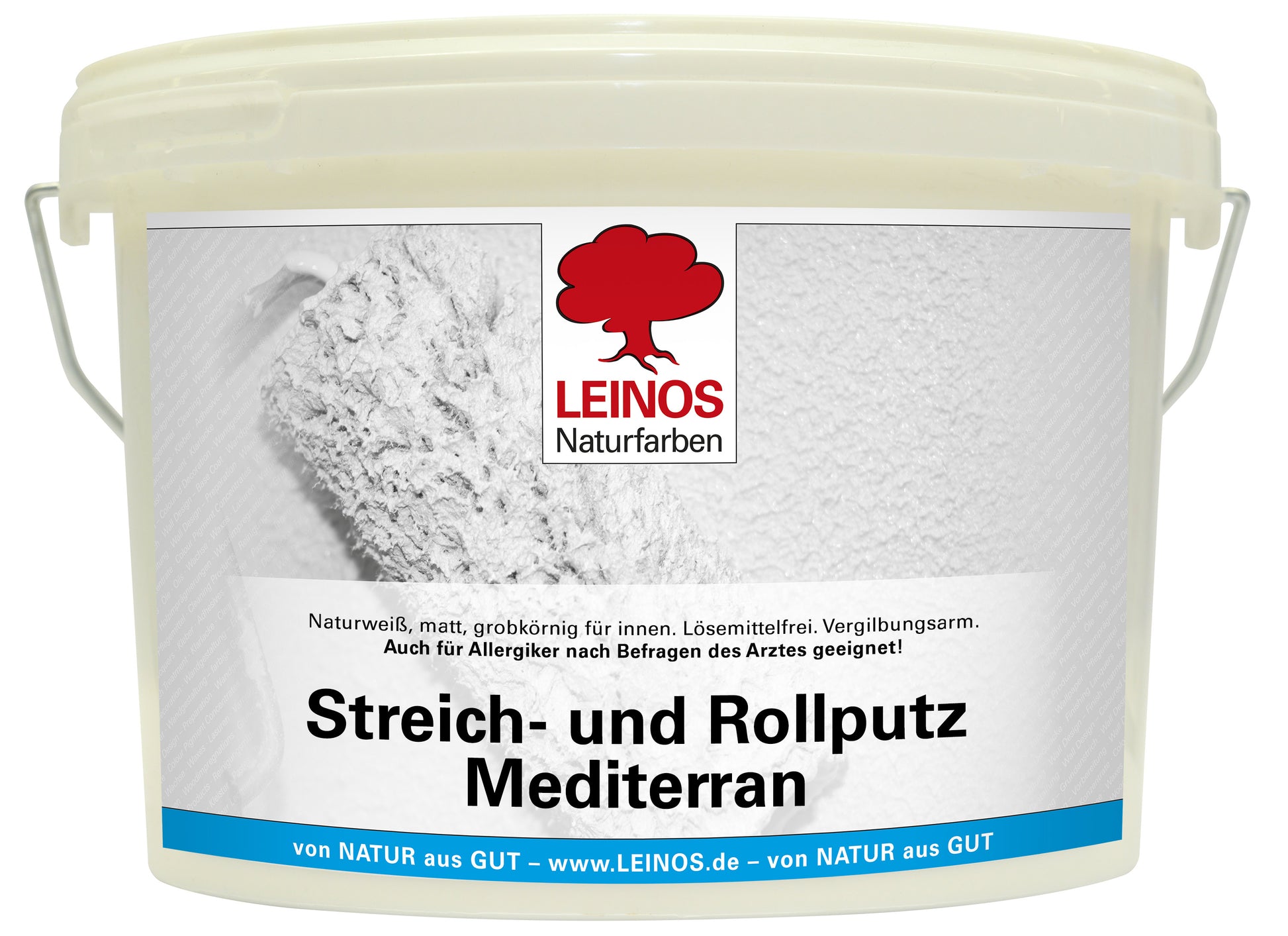 LEINOS Streich- und Rollputz mediterran 680, weiß – Dekorativer Strukturputz für Innen, lösemittelfrei, atmungsaktiv, gebrauchsfertig, mediterrane Optik, auf Lehm, Kalk, Putz, Altanstrich – 2,5