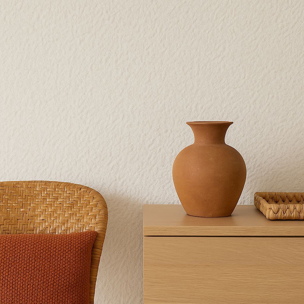 Mediterrane Struktur für Innenräume: Weißer Streich- und Rollputz für kreative Wandgestaltung mit markanter Oberflächenstruktur in südlichem Stil – für eine warme Wohnatmosphäre.