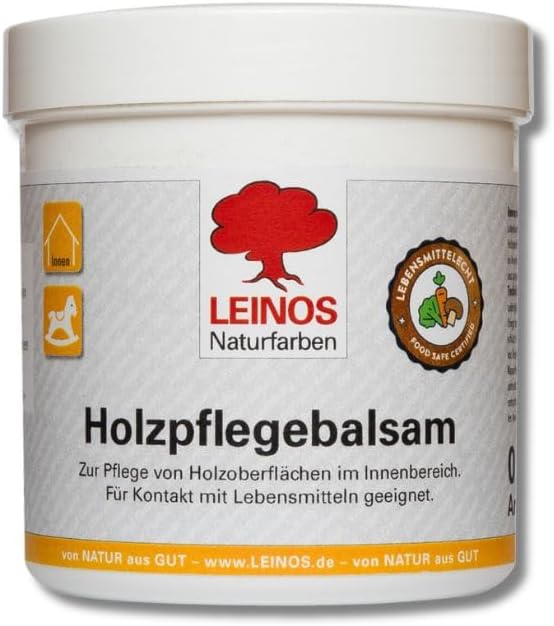 Der LEINOS Holzpflegebalsam 250 ml ist die ideale Lösung zur natürlichen Pflege von Holzoberflächen im Innenbereich – besonders in Küchen und Esszimmern, wo direkte Lebensmittelkontakte keine Seltenheit sind. Der Balsam schützt, pflegt und belebt das Holz mit einer einzigartigen Kombination aus pflanzlichen Ölen, Lanolin und Bienenwachs – ganz ohne Lösungsmittel.