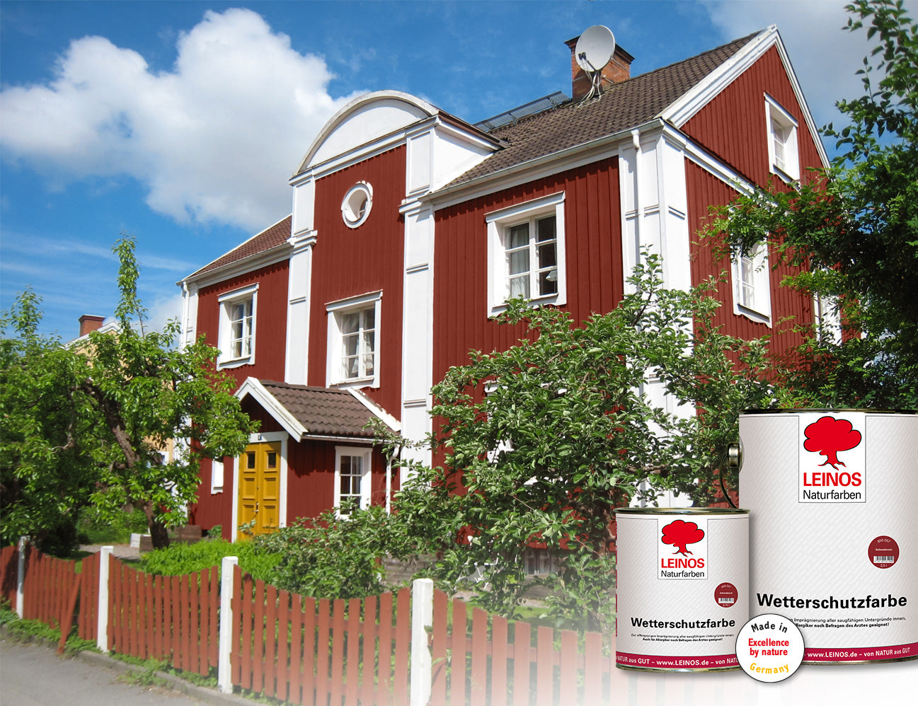 LEINOS Wetterschutzfarbe 750 ml | Schwedenrot Holzlasur für Holzfassaden Fenster Gartenhäuser| wetterbeständige Deckfarbe für effektive Versiegelung und langanhaltenden Schutz auf Ölbasis im Außenbereich