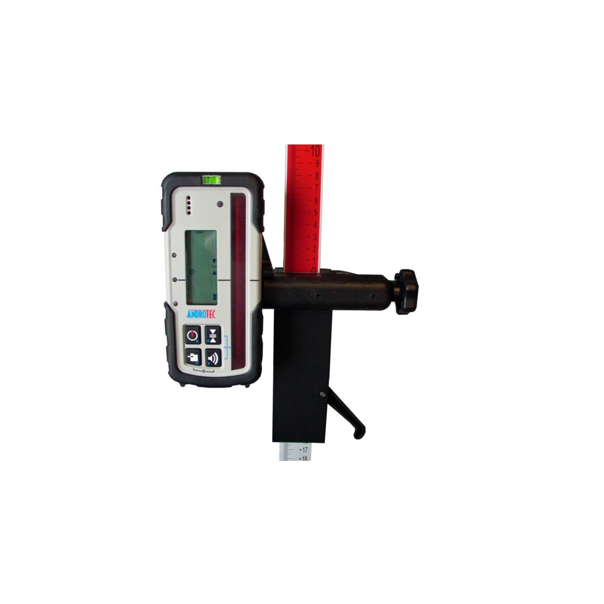 Der ANDROTEC METOR Handempfänger eignet sich für alle Rotationslaser im Wellenbereich von 610 - 790 nm. Der Empfänger zeigt dabei millimetergenau die Abweichung des Laserstrahls zur Markierebene an. Dies ermöglicht ein schnelles Messen und Korrigieren von Höhendifferenzen. Der METOR Laserempfänger kann bis zu 100 Messwerte speichern, somit müssen die Werte nicht händisch notiert werden.