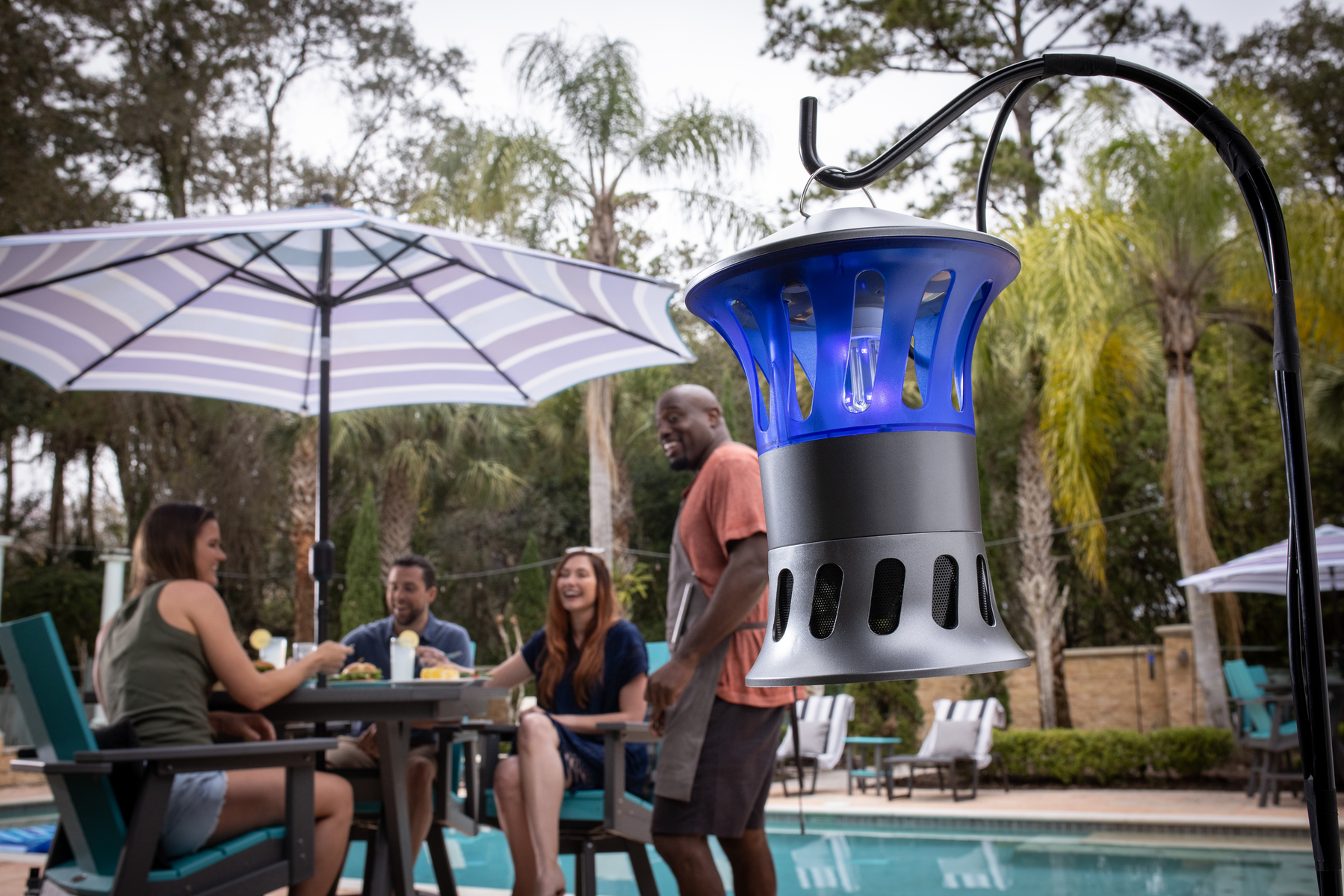 Skeeter Hawk: Sicherer, natürlicher und kräftiger Schutz eine komplette Reihe von Mücken- und fliegenden Insektenschutzprodukten, die sichere, natürliche Inhaltsstoffe mit leistungsstarker Mückenabwehrtechnologie kombinieren. ANZIEHEN & ZAPPEN: Die Skeeter Hawk Patio Mückenfalle zieht Insekten mit Dual-Band-UV-LED-Technologie an. Lästige Mücken und andere fliegende Insekten werden effektiv angezogen und durch ein 360°-elektrisches Gitter eliminiert. Das Dual-Band-LED-UV-Licht lockt lästige Mücken und andere fliegende Insekten an, während der flüsterleise Ventilator sie ansaugt, wo sie austrocknen und sterben. Die Area Mosquito Trap schützt effektiv größere Flächen im Garten, um Pools und große Terrassen herum. Der einklappbare Haken und die lange Schnur ermöglichen eine vielseitige Aufstellung.