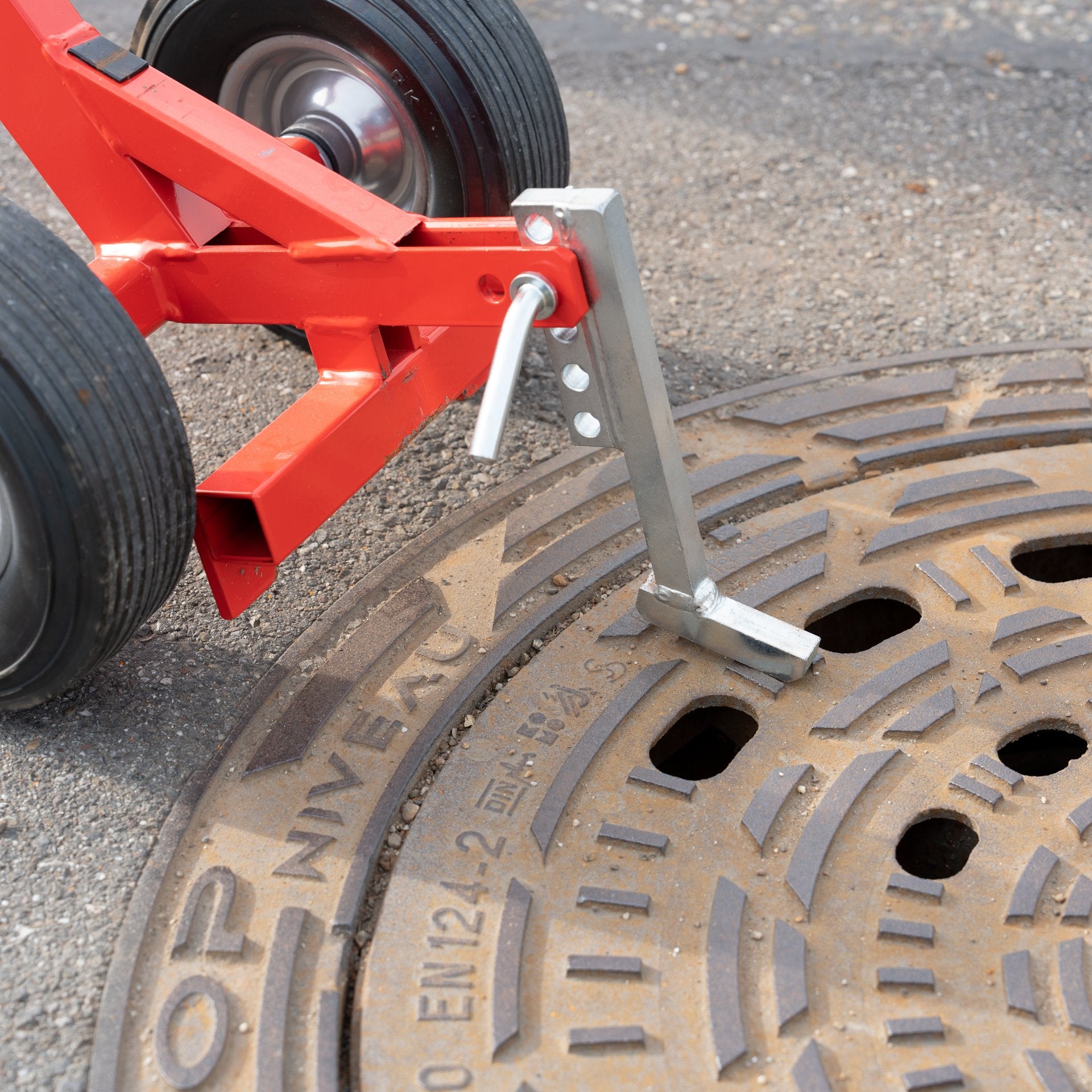 Schwerlasthaken mit gerader Spitze. Das umfangreiche Haken- und Verlängerungssortiment für den Kanaldeckelheber ermöglicht ein einfaches Anheben von allen Kanaldeckeln. Dank der verschiedenen Haken, stellen auch Benzinabscheiderdeckel kein Problem dar.