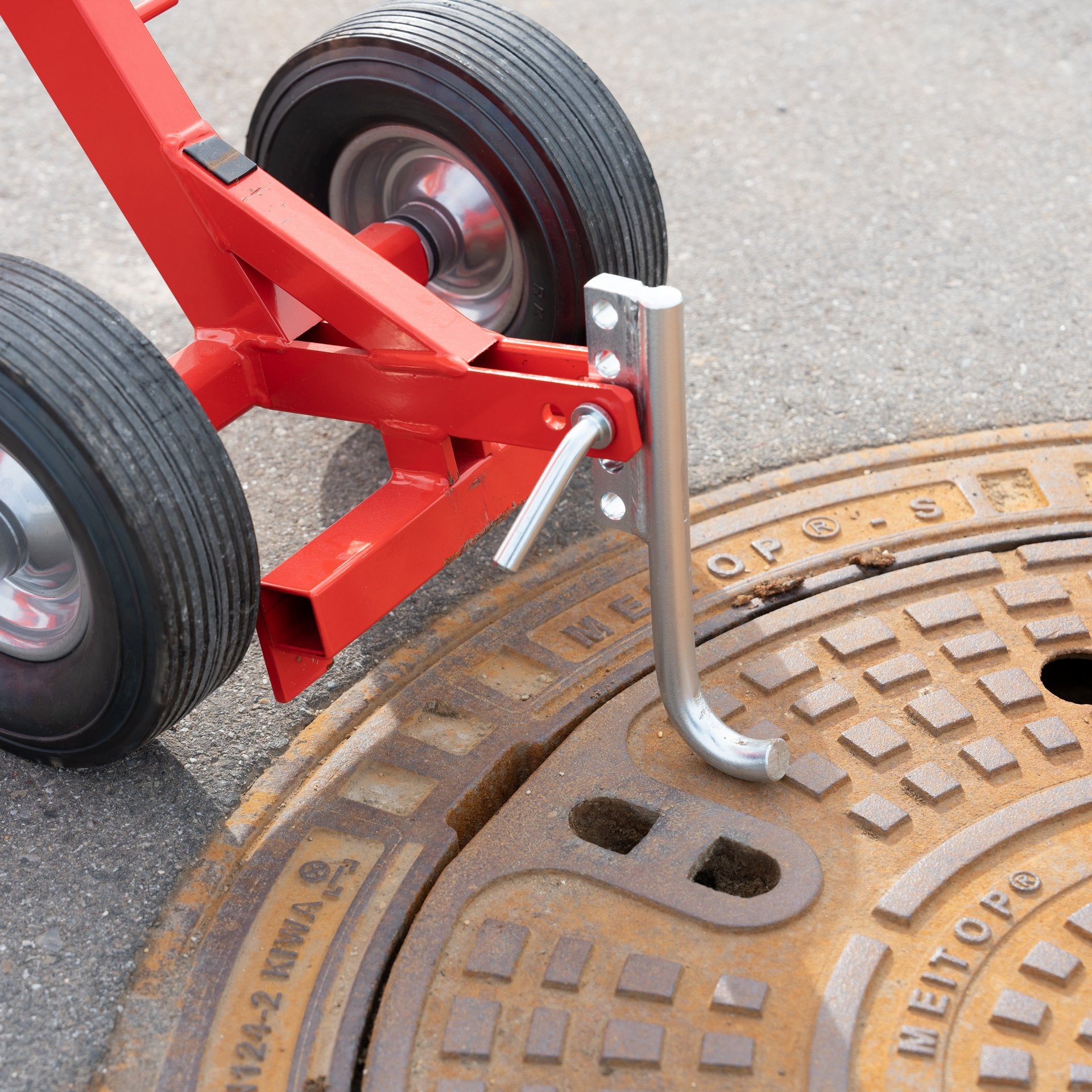 Das umfangreiche Haken- und Verlängerungssortiment für den Kanaldeckelheber ermöglicht ein einfaches Anheben von nahezu allen Kanaldeckeln. Dank der verschiedenen Haken stellen auch Benzinabscheiderdeckel kein Problem dar.