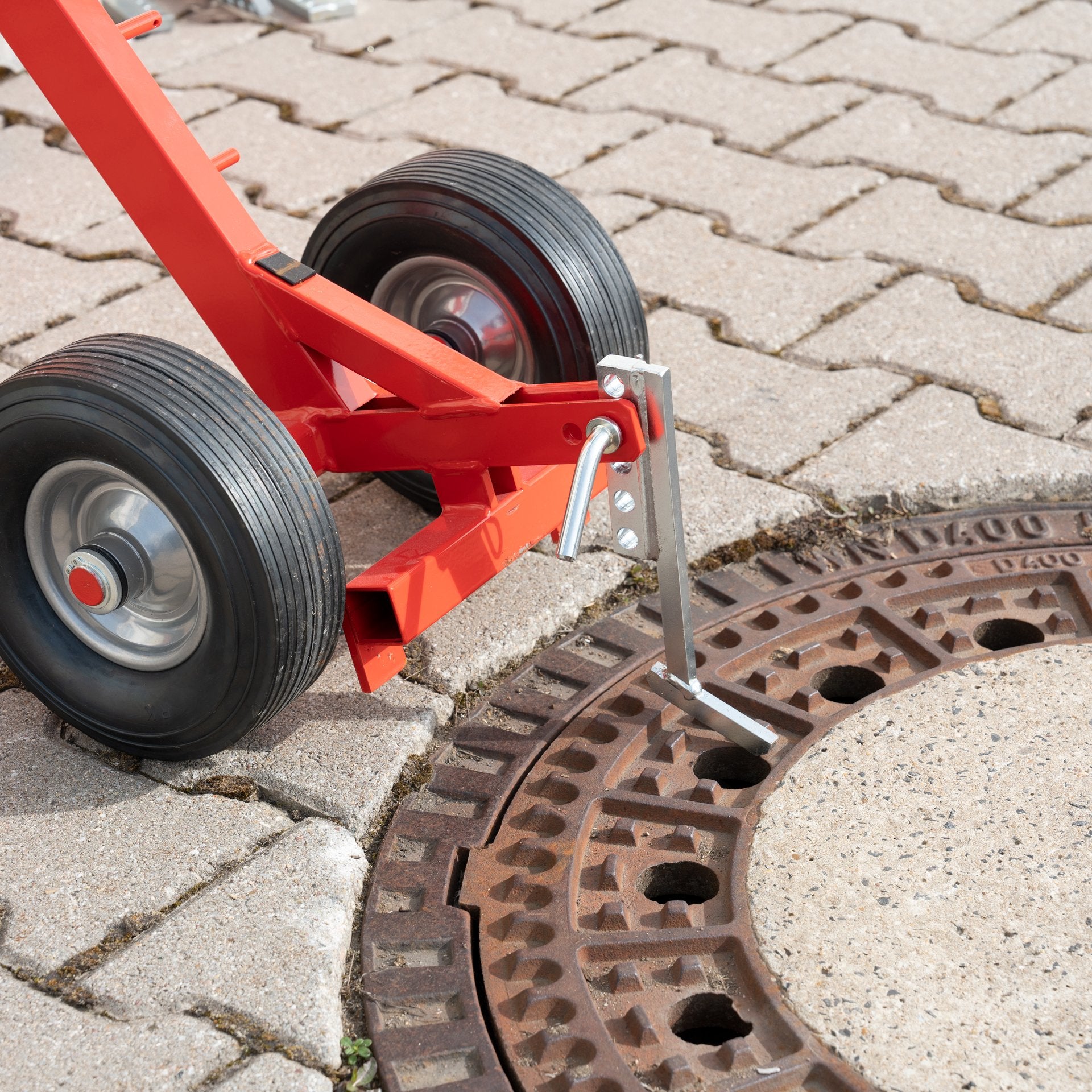 Schwerlasthaken gerade Spitze, schmal. Das umfangreiche Haken- und Verlängerungssortiment für den Kanaldeckelheber ermöglicht ein einfaches Anheben von allen Kanaldeckeln. Dank den verschiedenen Haken, stellen auch Benzinabscheiderdeckel kein Problem dar.