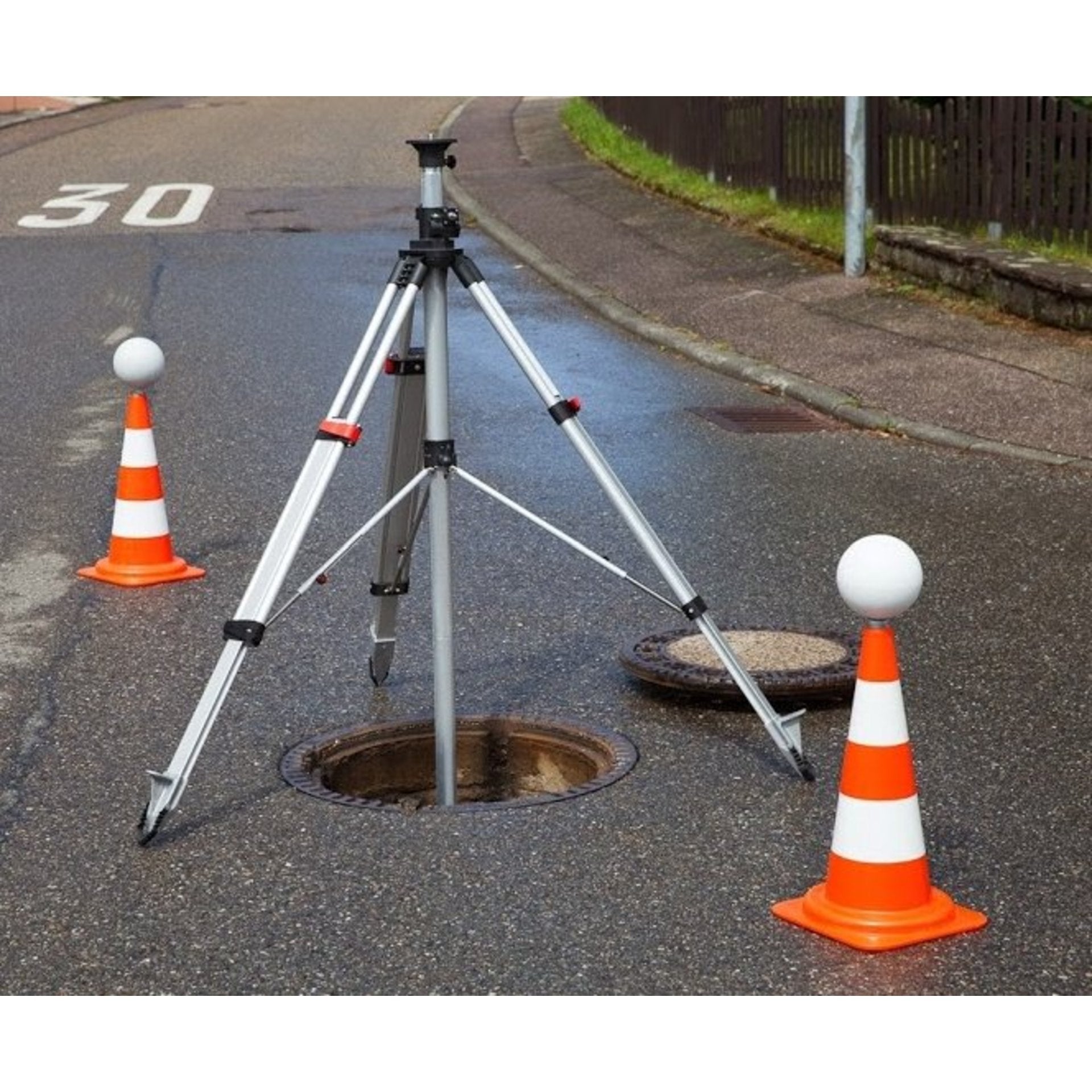 Mit dem NESTLE Kanalschachtstativ kann man 3D-Laserscanner sowohl nach unten (z.B. Schachtraum, Tank) als auch nach oben positionieren. Durch einfach arretierbare Verlängerungen an der Zahnsäule ist standardmäßig eine Tiefe von bis zu 4 m ab Stativfuß möglich. Bewegt werden kann das Instrument mittels Kurbel, oder über einen speziellen Adapter auch mit handelsüblichen Akkuschraubern. Ohne Umbauaufwand ist ein Betrieb nach oben oder unten durch die mitgelieferten Anschlussstücke problemlos möglich. Das macht das NESTLE Kanalschachtstativ komfortabel in der Handhabung und universell einsetzbar.