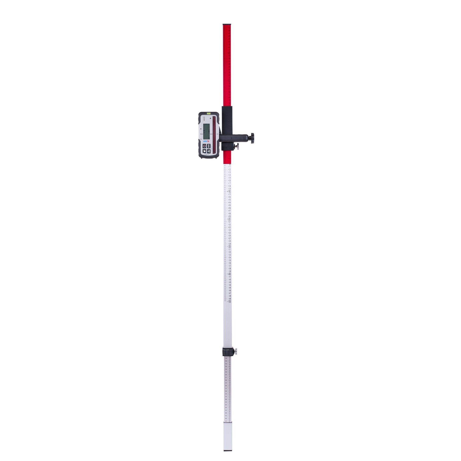 Die Laserlatte für Empfänger von Rotationslasern, ist das optimale Zubehör bei der Bestimmung eines Niveaus und das ohne zu rechnen. Das leicht zu tragende eloxierte Aluminiumprofil liegt einwandfrei in der Hand und ist gegen jegliche Witterungseinflüsse geschützt. Diese Laserlatte wird mit einem Gleitadapter mit Schraubklemmung geliefert. Der Gleitadapter vereinfacht die Ablesungen an der Laserlatte. Die zweifarbige Latteneinteilung erleichtert die Bestimmung eines Niveaus. Der obere Teil ist absteigend von 50 cm bis 0 cm unterteilt und rot unterlegt. Der untere Teil dagegen ist silbrig unterlegt und aufsteigend von 0 cm bis 50 cm unterteilt. So sind Abweichungen vom Niveau einfach und ohne Berechnung ablesbar. Die Laserlatte mit dem Empfänger an der Null- Markierung wird bis zur Empfangsebene ausgezogen und fixiert. Eine weitere Skala an der Vorderseite zeigt Ihnen die Höhe des Null-Niveaus zum Bodenpunkt der Latte an. Ideal für alle Arbeiten mit Rotationslasern.
