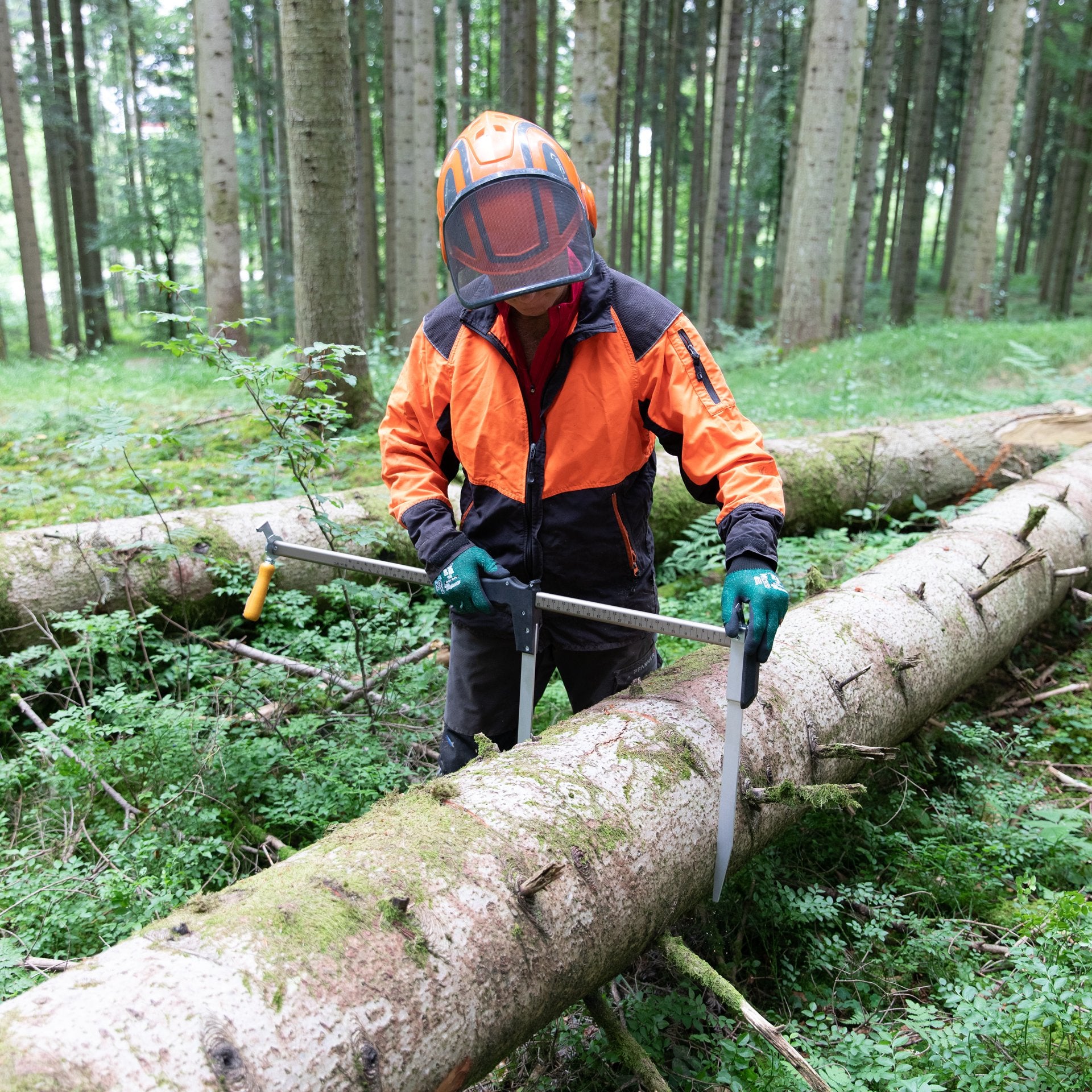 Mit der Abläng-Messkluppe Specht haben Sie gleich zwei überaus praktische Funktion in einer Kluppe vereint. Ablängen und Stammdurchmesser bestimmen. Durch die Anschläge mit beweglichem Holzreißer, ist die Kluppe perfekt für den Einsatz mit Hand- und Motorsägen geeignet. Die praktische und robuste Bauweise mit Ovalprofil, bei der der Messschieber ohne zu Verkanten über die Messschiene gleitet, beweist die hochwertige Beschichtung. Das besondere Druckverfahren in Lasergravur macht die Ziffern auch bei Dämmerung gut ablesbar und eine Eloxalschicht verhindert zuverlässig einen Abrieb. Gleichzeitig sorgt diese für eine leichte Reinigung von Harzen und Schmutz. Die Speziallegierung macht die Messkluppe äußerst biegefest, robust und widerstandsfähig. Als Standard und "geeicht" Version in zwei Längen erhältlich.