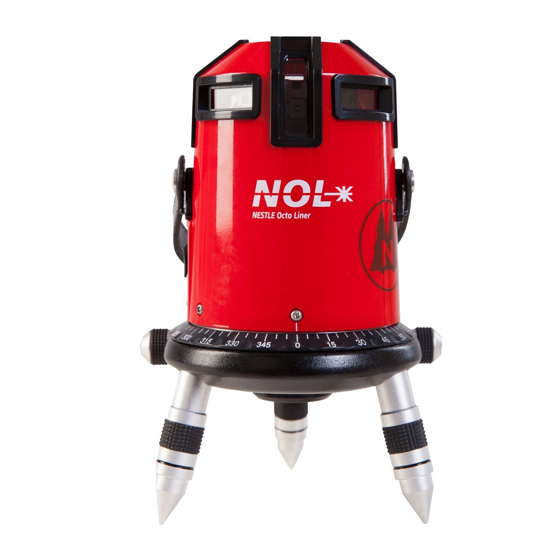 Der NESTLE Octoliner ist ein elektronischer, selbstnivellierender Kreuzlinienlaser mit überragender Genauigkeit. Er kann vier vertikale Linien im rechten Winkel zueinander projizieren sowie eine 360°-Horizontallinie, einen Lotpunkt am Boden und ein Laserkreuz an der Decke bei einer Genauigkeit von ±1,5 mm/10 m. Er nivelliert sich selbst schnell und stabil in einem Bereich von 4° aus. Die Selbstnivellierung kann ausgeschaltet werden, um bei Bedarf Laserstrahlen schräg zu projizieren. Vorteilhaft ist außerdem sein verstellbarer 360° Teilkreis für einfache Winkelmessungen. Der Seitenfeintrieb unterstützt das exakte Ausrichtung der Vertikalebenen. Speziell für Außenarbeiten empfehlen wir die Verwendung eines DECTO Empfängers mit Halterung.