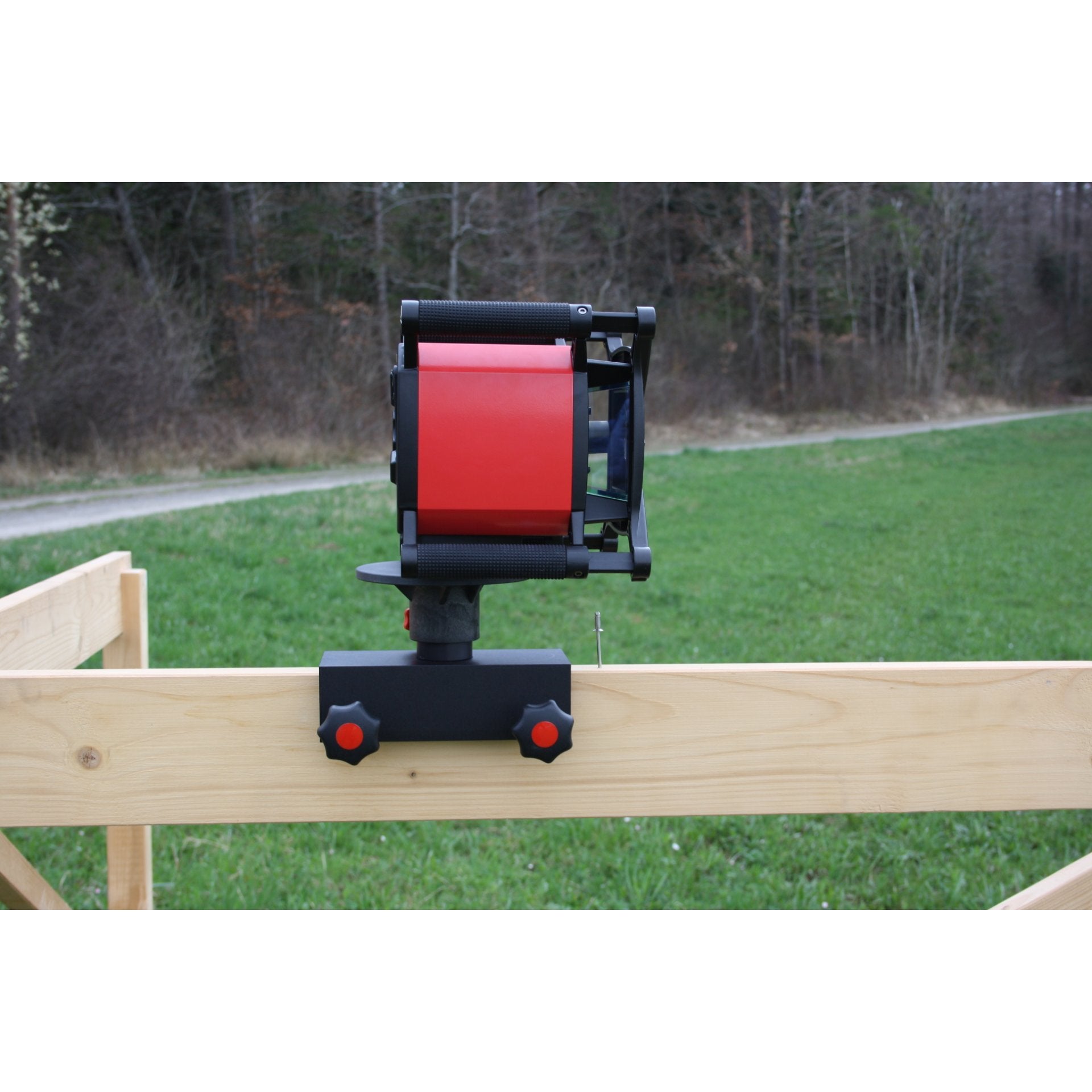 Mit dem Schnurgerüstadapter für den Empfänger PDR60/PDRG60 lassen die Achsen mit einem Rotationslaser schnell und präzise ausrichten. Die Anbringung ist dabei äußerst einfach. Der L-Winkel 90° wird zwischen dem Empfänger und der Halteklammer montiert, so lässt sich der Empfänger für den vertikalen Einsatz auf der Bohle direkt über der Achsmarkierung befestigen.