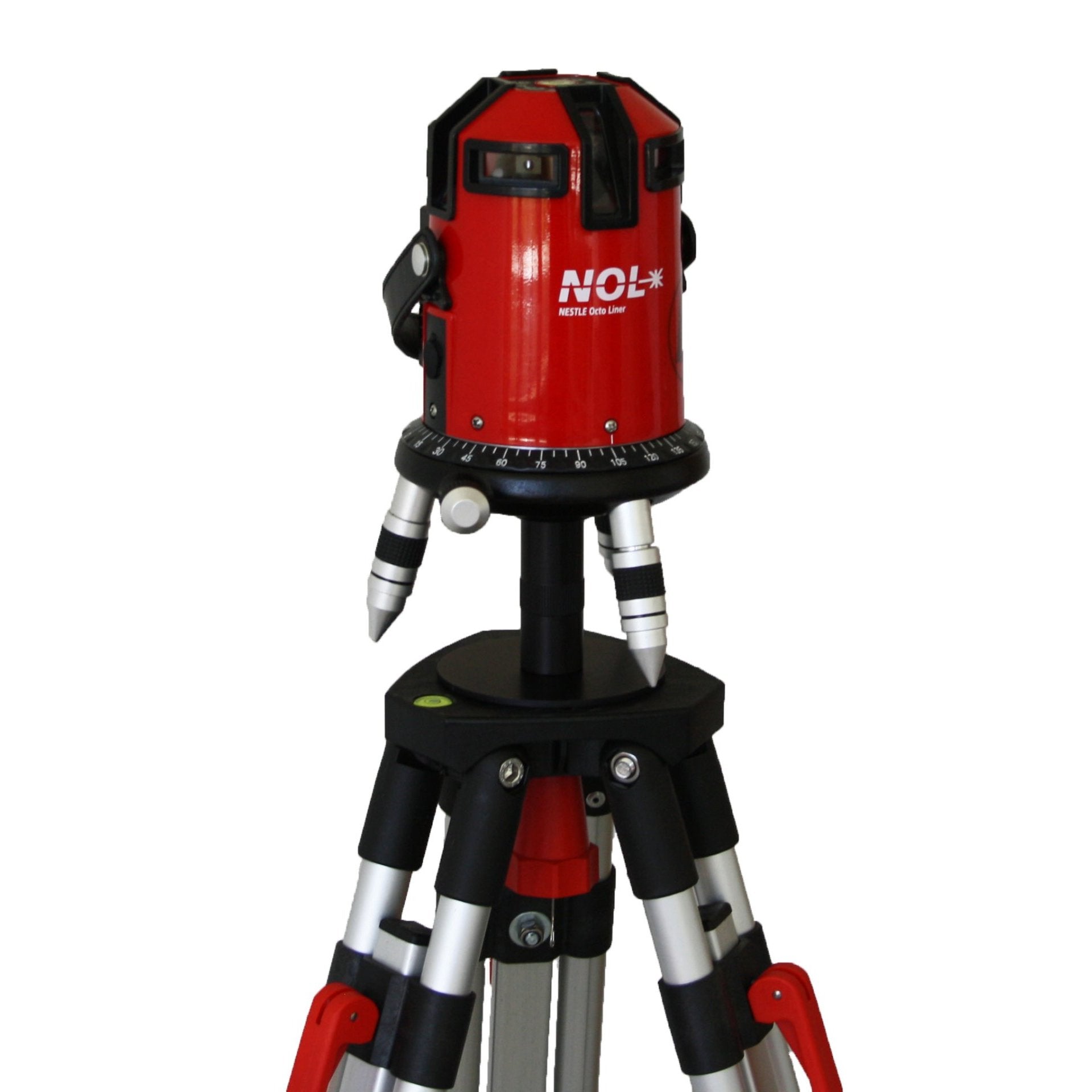 Der Stativadapter ermöglicht es, einen Linienlaser mit 5/8"-Anschluss auf einem Standard-Stativ anzubringen. Dabei wird die Scheibe auf den Stativteller gelegt und dann der Verlängerungszapfen auf der Zentralanzugsschraube angebracht. Die Standfüße des Lasers sind somit nicht mehr hinderlich.