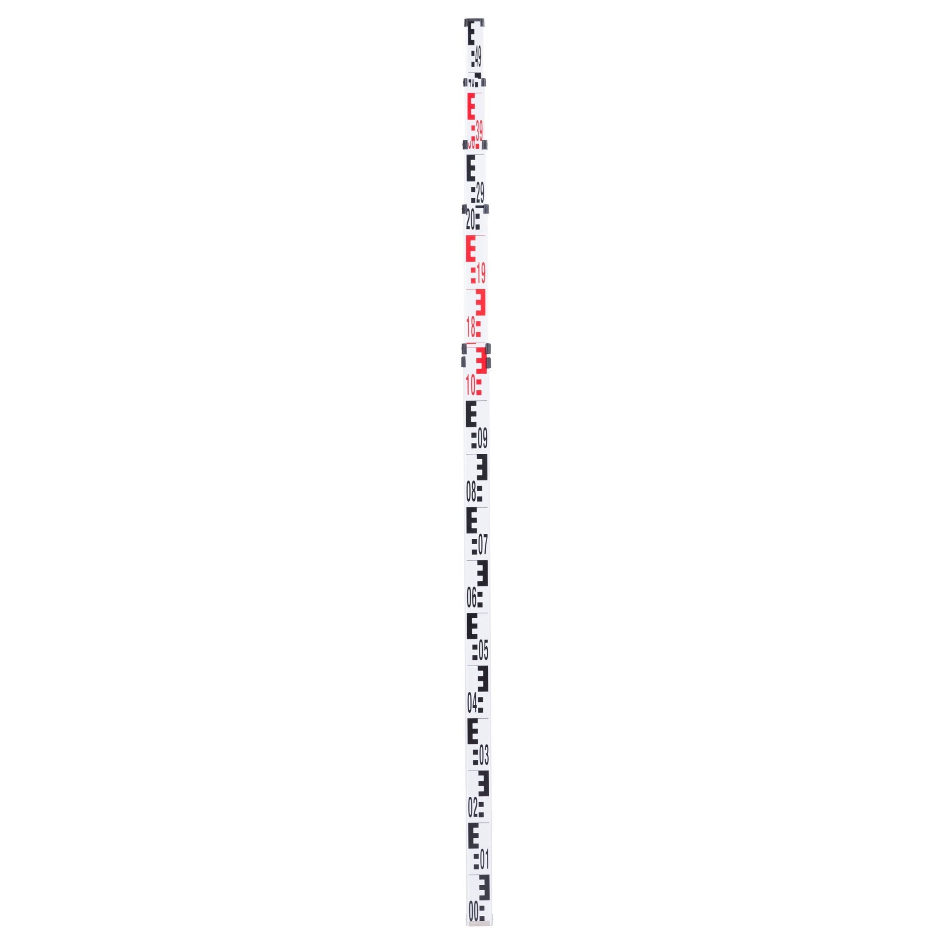 Teleskopnivelliermeter-Messlatten für Nivellements inklusive Tasche und Libelle. Dieser Tenimeter ist bis 5 m teleskopartig ausziehbar und mit der geringen Transportlänge und dem niedrigen Gewicht bequem zu transportieren. Die E-Teilung auf der Vorderseite mit abwechselnd rot und weiß lackierten Meterstücken. Das Modell 18203000 hat auf der Rückseite eine mm-Teilung zum Messen lichter Höhen. Die Teleskop-Nivelliermeter sind robust und werden den täglichen Anforderungen auf Baustellen jederzeit gerecht. Der Aufdruck ist durch überstehende Kanten vor Abrieb geschützt. Die stabile Druckknopfrasterung verhindert ein zusammensacken der Einzelteile. Durch die genaue Führung der einzelnen Elemente ist es leichtgängig und verkantet nicht.