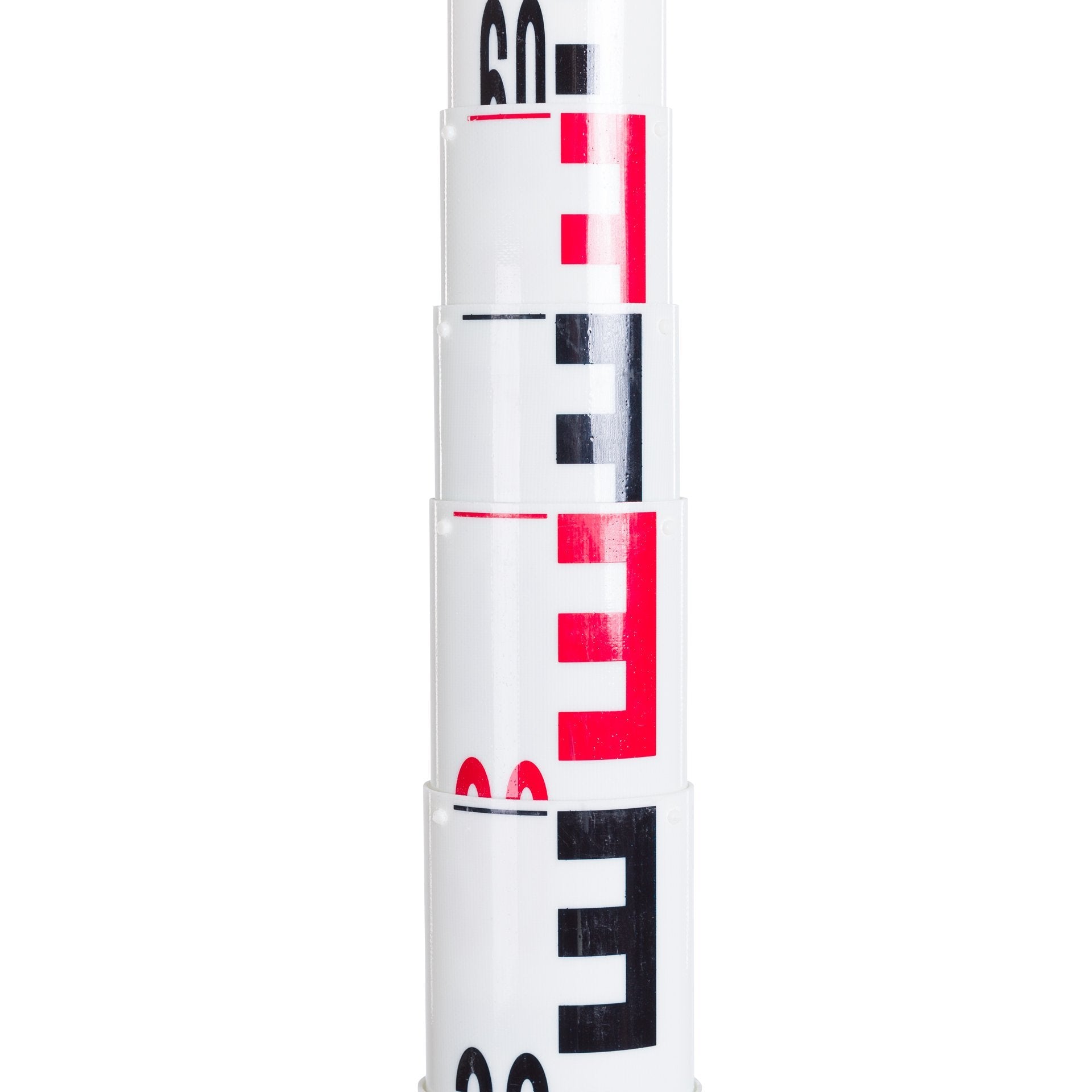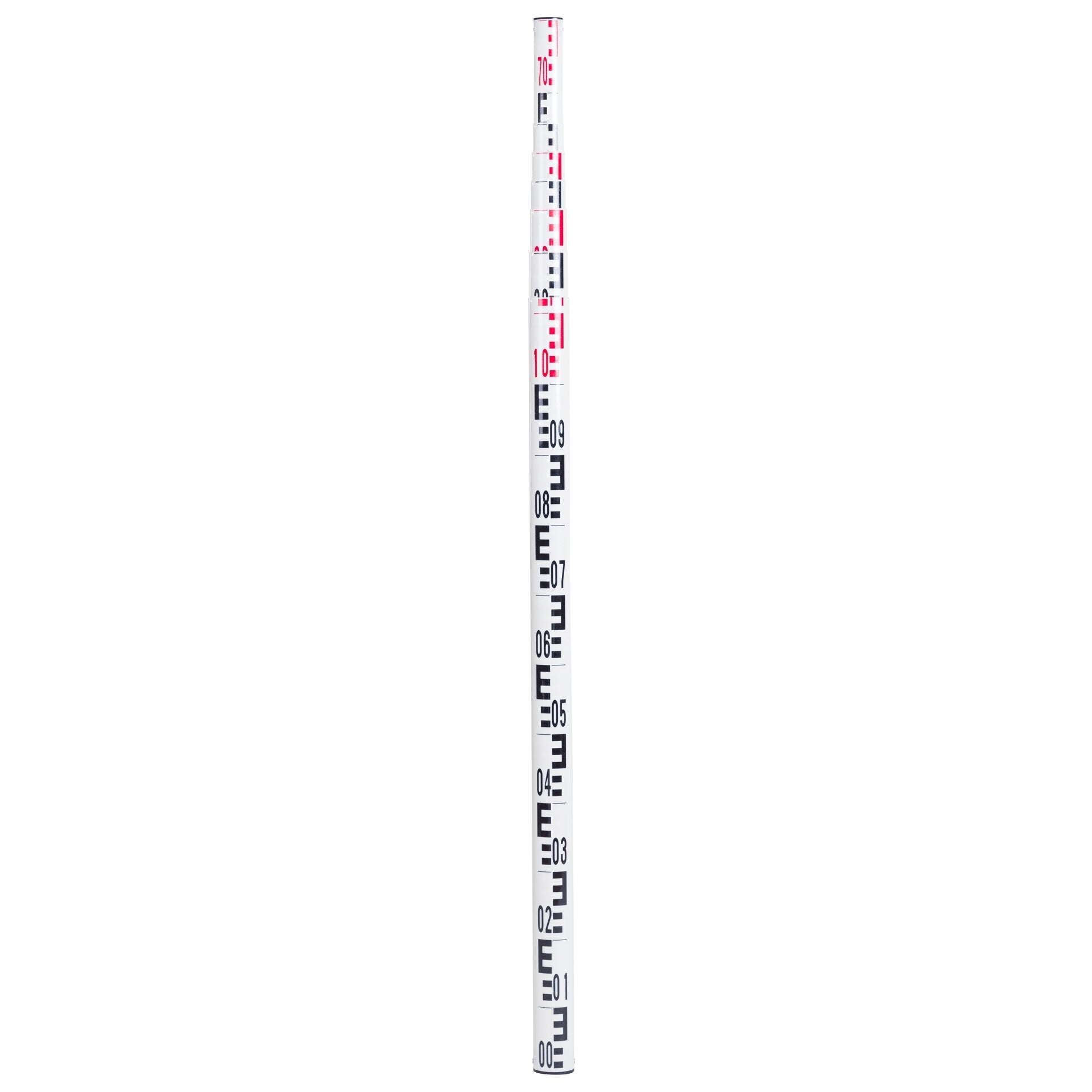 Teleskopnivelliermeter-Messlatten für Nivellements inklusive Tasche und Libelle. Dieser Tenimeter ist bis 7m teleskopartig ausziehbar und mit der geringen Transportlänge und dem niedrigen Gewicht bequem zu transportieren. Die E-Teilung auf der Vorderseite mit abwechselnd rot und weiß lackierten Meterstücken. Das Modell 18208000 hat auf der Rückseite eine mm-Teilung zum Messen lichter Höhen. Die Teleskop-Nivelliermeter sind robust und werden den täglichen Anforderungen auf Baustellen jederzeit gerecht. Der Aufdruck ist durch überstehende Kanten vor Abrieb geschützt. Die stabile Druckknopfrasterung verhindert ein zusammensacken der Einzelteile. Durch die genaue Führung der einzelnen Elemente ist es leichtgängig und verkantet nicht.