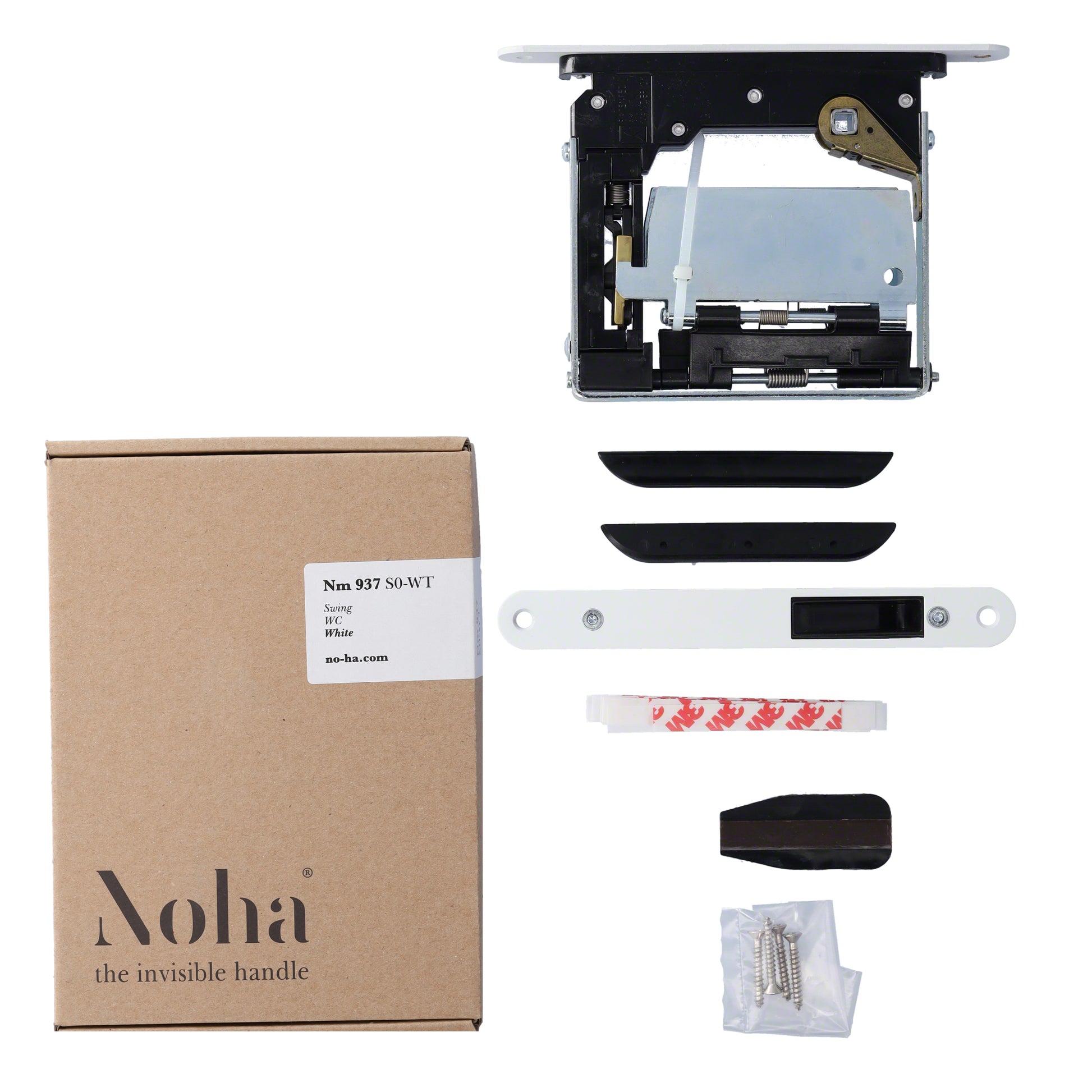 No-Ha Mini 937 S0 Magnetschloss mit Verriegelung für Drehtüren, WC - Lange Verriegelungsplatte