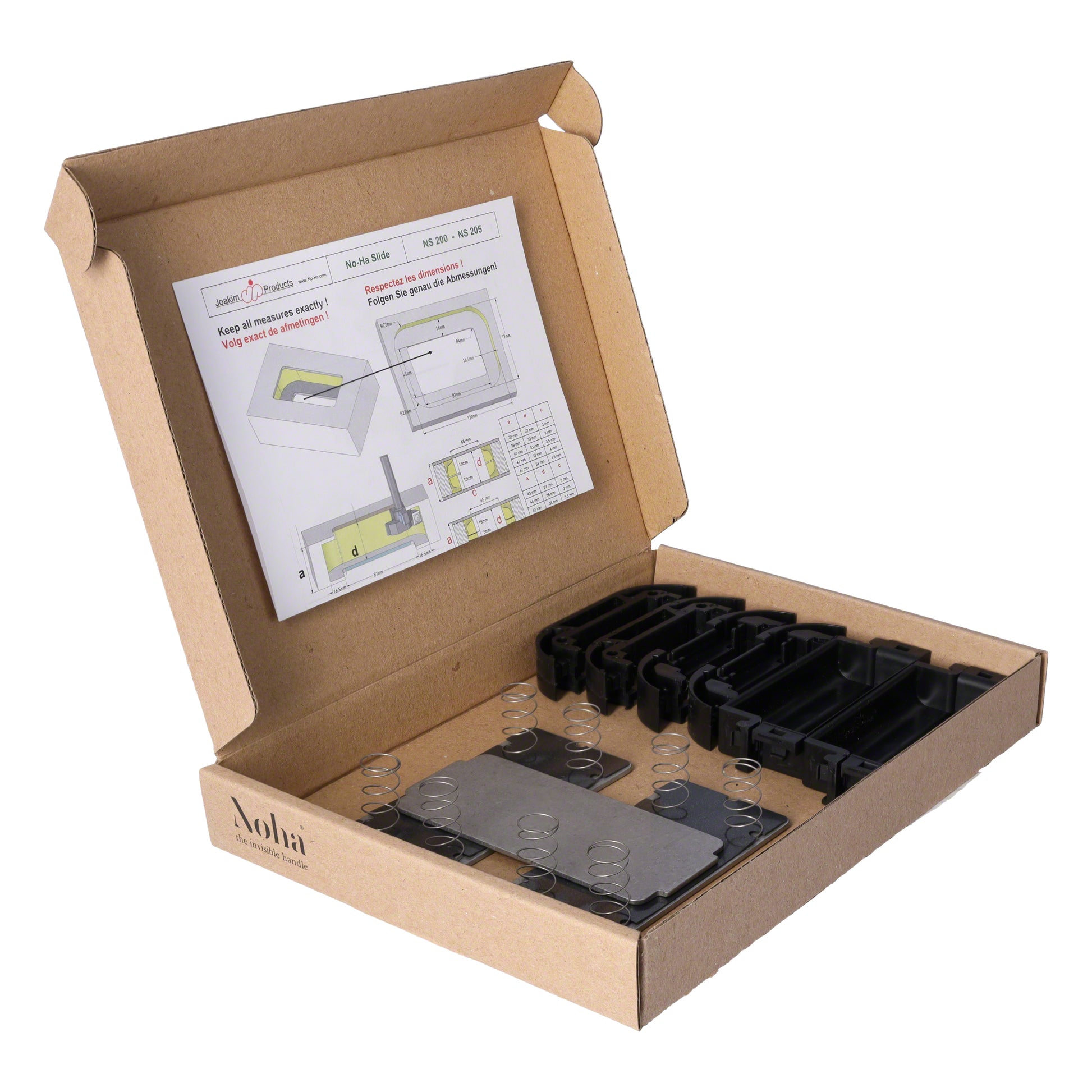 No-Ha NS Serie für Schiebetüren - Der unsichtbare Griff Die NS -Serie sind Türgriffe, die im Türblatt einfließen und auf alle Schiebetüren aufgebracht werden können, die in oder vor der Wand gleiten. Der Griff ist auf beiden Seiten der Tür steuerbar und bietet genügend Platz für die Finger. Der Griff hat das gleiche Aussehen wie das No-Ha für Drehtüren. Dies ist der Türgriff, den Sie für alle Ihre Schiebetüren und Schwenktüren benötigen. Dieser Griff kann auf beiden Seiten der Tür oder auf einer Seite eingebaut werden. Das Modell hängt von der Dicke des Türblattes ab. Für Türen mit einer Dicke von mehr als 27 mm können Sie die NS 105 einbauen. Für Türen mit einer Dicke von mehr als 52 mm können Sie die NS 105 zwei mal beidseitig einbauen WARTUNGSFREI Keine Wartung erforderlich, oxidationsbeständig. ZUVERLÄSSIG Keine beweglichen Teile beim Öffnen und Schließen der Tür SAUBERES DESIGN Die Türplatte ist völlig glatt GERÄUSCHLOS Stoßfreies und flüssiges Öffnen und Schließen der Tür. Hinweis: Die Frontplatte/Abdeckplatte gehört nicht zum Lieferumfang und kann separat bestellt werden.