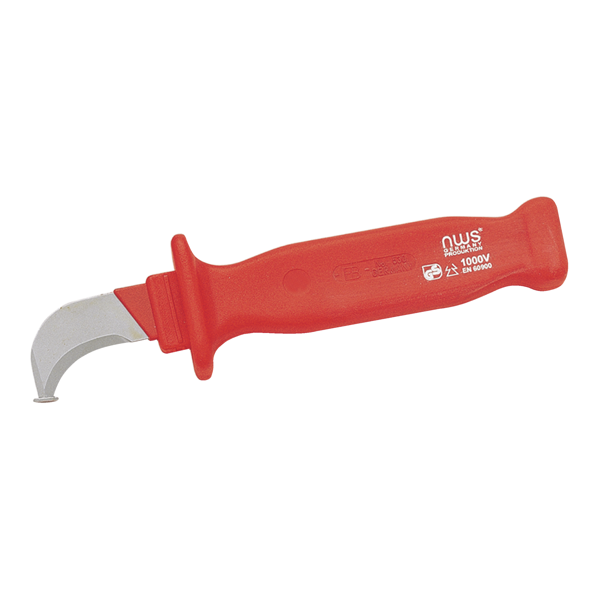 Kabelmesser 1000V Mit Schutzkappe Zum Aufschlitzen und Abmanteln von Feuchtraumkabeln Mit Hakenklinge und Gleitschuh an der Schneidenspitze zum Schutz der Leiterisolation Mit feststehender Klinge Ergonomischer Sicherheitsgriff aus zäh elastischem, schlagfesten Kunststoff Isolierung nach DIN EN/IEC 60900 Klinge aus rostfreiem Stahl, gehärtet
