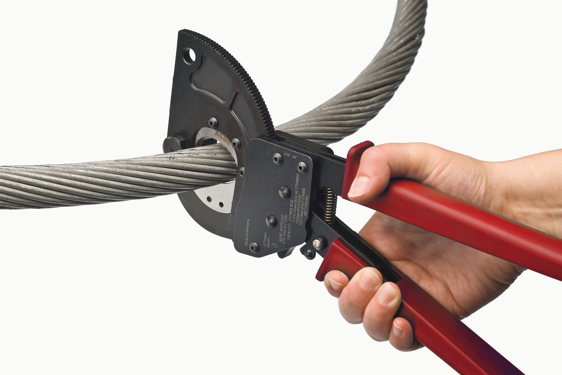 Zum Schneiden von Kupfer- und Alukabel mit hartem Gummi oder Kunststoffmantel Spezielle Schneidengeometrie und Präzisionsschneiden für einen sauberen, gratfreien Schnitt Ratschenförmige Klemmung der Kabel gewährleistet ein quetschfreies Schneiden Nicht für Stahldraht, Aluminiumlegierungen und hartgezogene Kupferleiter geeignet Mit auswechselbarer Klinge Entriegelung der Klinge in jeder Schneidposition Optimale Hebelübersetzung, leichte Handhabung und minimaler Kraftaufwand durch Ratschenprinzip Ergonomisch geformte Soft-Handgriffe mit Abgleitschutz Aus Spezialstahl, hochfest, besonders beanspruchte Teile zusätzlich vergütet