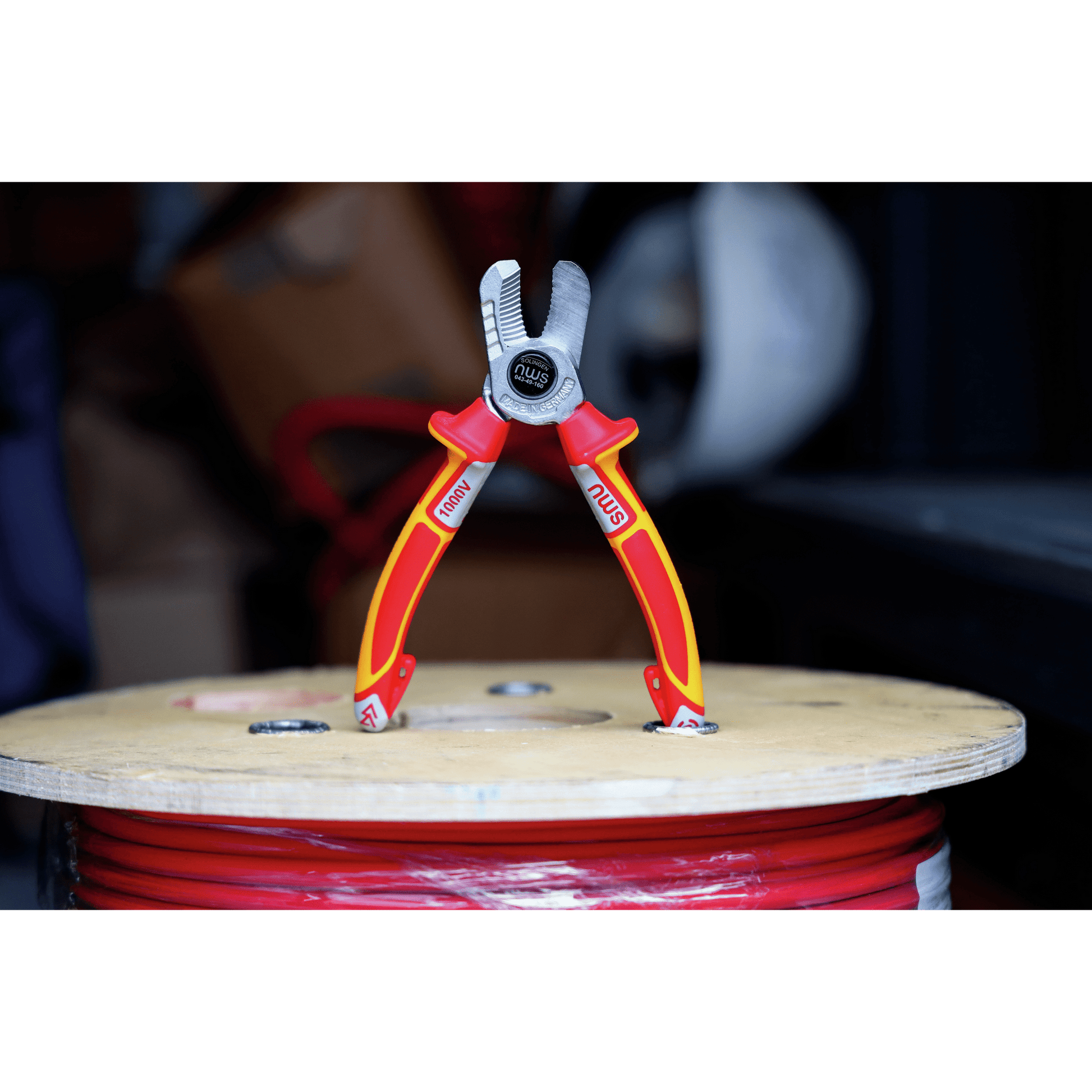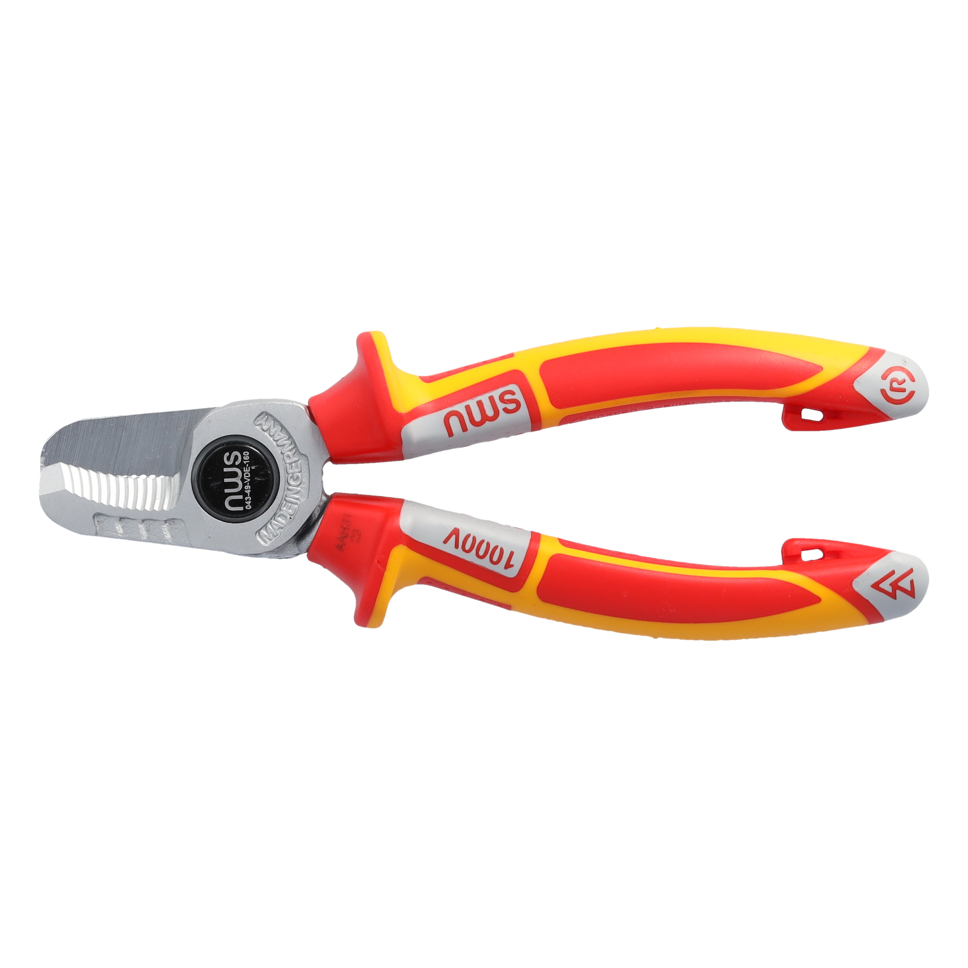 NWS Kabelschneider VDE-160mm-SB | zum Abisolieren und Schneiden von Kupfer- und Alukabel | ratschenförmige Klemmung der Kabel quetschfreies Schneiden