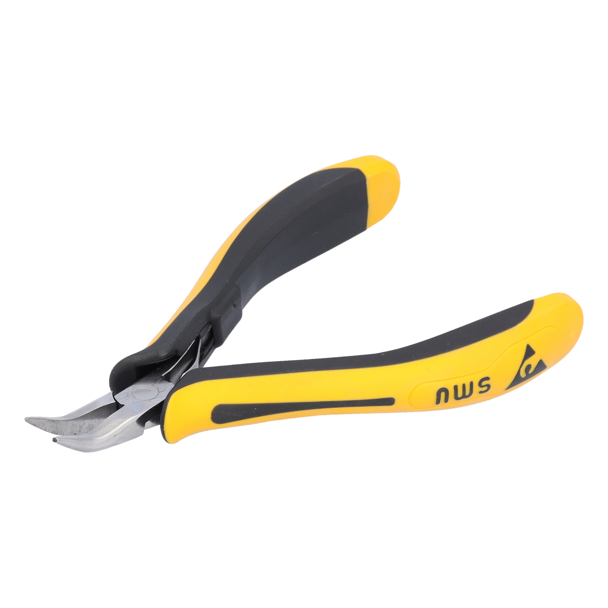Kettenzange ESD Zum Greifen feiner Teile und Formen von Drähten Glatte Innenflächen, Kanten gerundet, Spitzen 45° gebogen Spielfreier Gang Mit eingelegtem Gelenk und Öffnungsfeder Griffe mit ergonomisch geformten ESD Mehrkomponenten-Hüllen, elektrisch ableitend Aus Werkzeugstahl, geschmiedet, ölgehärtet ESD - elektrisch ableitend Zum Schutz von elektrostatisch gefährdeten Bauelementen und um Störungen im Schaltkreis zu vermeiden, leiten die Elektronikzangen mit ESD-Griffhüllen die elektrostatische Energie, die beim Arbeiten an elektronischen Bauteilen entstehen kann, kontrolliert ab. Achtung! Bedingt durch die elektrische Leitfähigkeit des ESD-Griffes dürfen diese Werkzeuge nicht mit Stromquellen in Berührung kommen, da Schäden durch einen elektrischen Schlag nicht auszuschliessen sind!