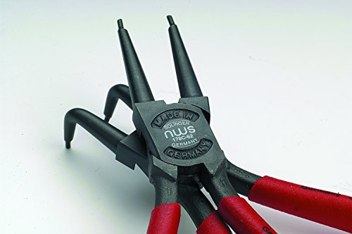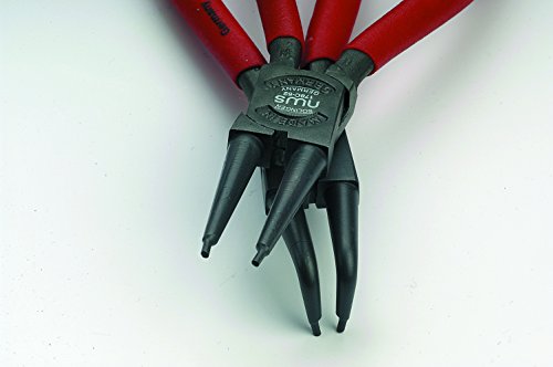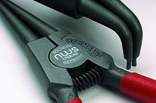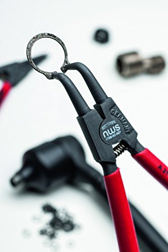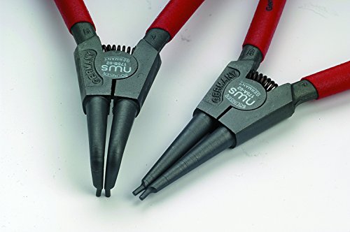 Bestückt mit Qualitätswerkzeugen. Zur Montage von Aussensicherungsringen auf Wellen. Zur Montage von Innensicherungsringen in Bohrungen. Mit geraden Backen. Mit 90° abgewinkelten Backen. Abrutschhemmende, abgedrehte Präzisionsspitzen. Mit Öffnungsfeder. Griffe mit Kunststoff überzogen. Aus Chrom-Vanadium-Stahl, geschmiedet, ölgehärtet. In praktischer Verkaufsverpackung