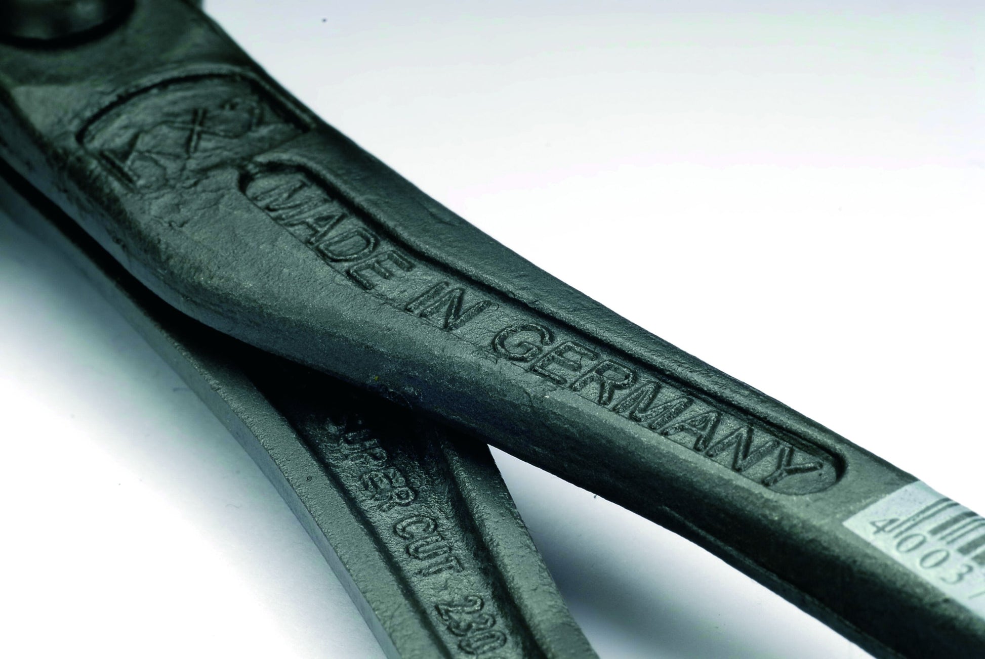 Kraft-Monierzange KX KX Solinger Flechterzange Besonders schlanke Form und nach außen gestellte Schneiden zum Binden tiefliegender Eisen und für Problemstellen Für den Einsatz an schwer zugänglichen Stellen Schnelles, zuverlässiges und kostengünstiges Verdrillen und Abschneiden des Drahtes in einem Arbeitsgang Zum Fixieren von Moniereisen mit Bindedraht von der Rolle Schneiden zusätzlich induktiv gehärtet Kraftgewerbe mit optimaler Hebelübersetzung für einfaches und ermüdungsarmes Arbeiten Enorme Schneidleistung, bis zu 45 % Kraftersparnis im Vergleich zu herkömmlichen Monierzangen Zangengewerbe elliptisch geformt um eine bestmögliche Anwendung zu gewährleisten Aus Werkzeugstahl, geschmiedet, ölgehärtet