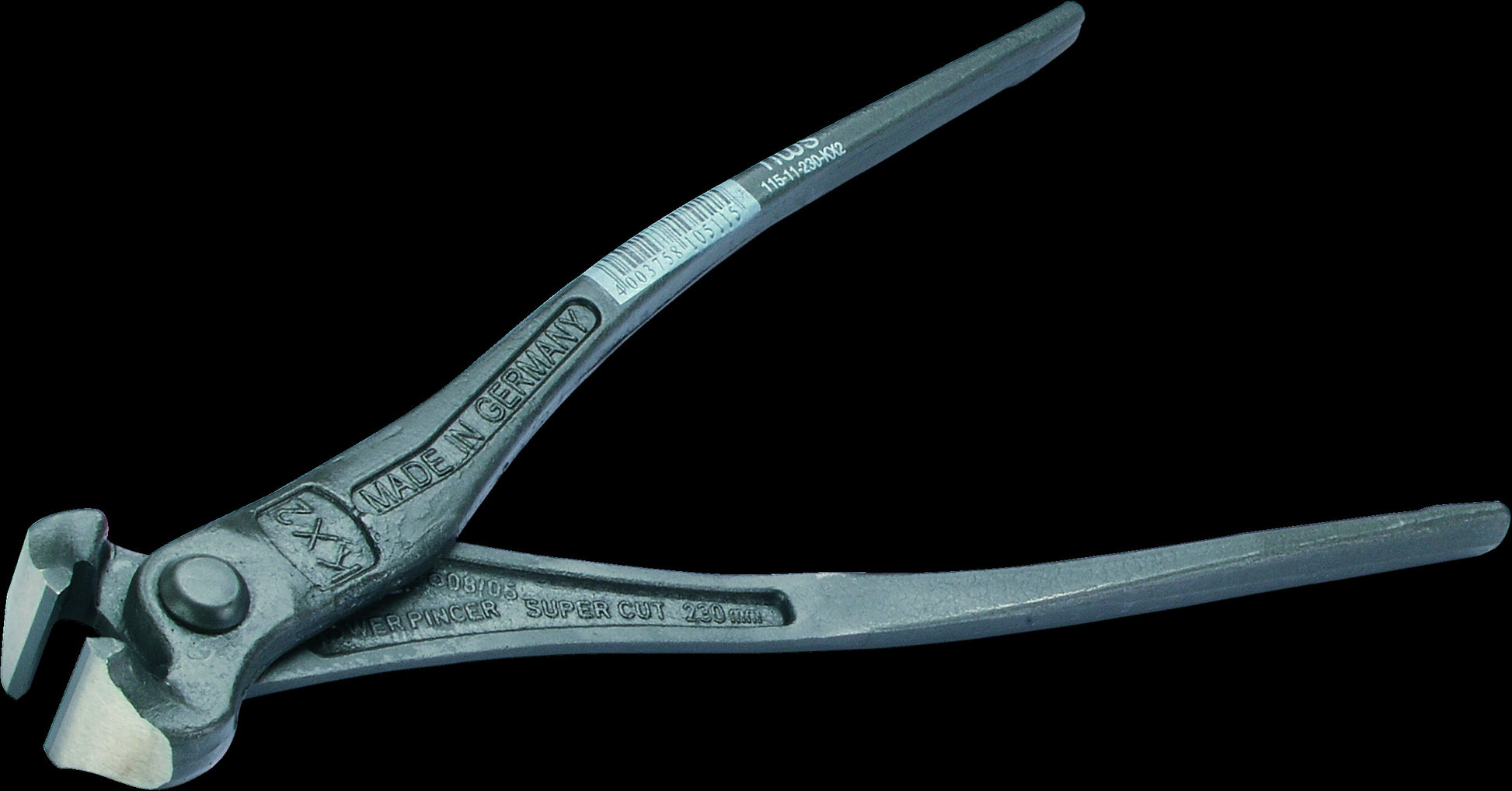 Kraft-Monierzange KX KX Solinger Flechterzange Besonders schlanke Form und nach außen gestellte Schneiden zum Binden tiefliegender Eisen und für Problemstellen Für den Einsatz an schwer zugänglichen Stellen Schnelles, zuverlässiges und kostengünstiges Verdrillen und Abschneiden des Drahtes in einem Arbeitsgang Zum Fixieren von Moniereisen mit Bindedraht von der Rolle Schneiden zusätzlich induktiv gehärtet Kraftgewerbe mit optimaler Hebelübersetzung für einfaches und ermüdungsarmes Arbeiten Enorme Schneidleistung, bis zu 45 % Kraftersparnis im Vergleich zu herkömmlichen Monierzangen Zangengewerbe elliptisch geformt um eine bestmögliche Anwendung zu gewährleisten Aus Werkzeugstahl, geschmiedet, ölgehärtet