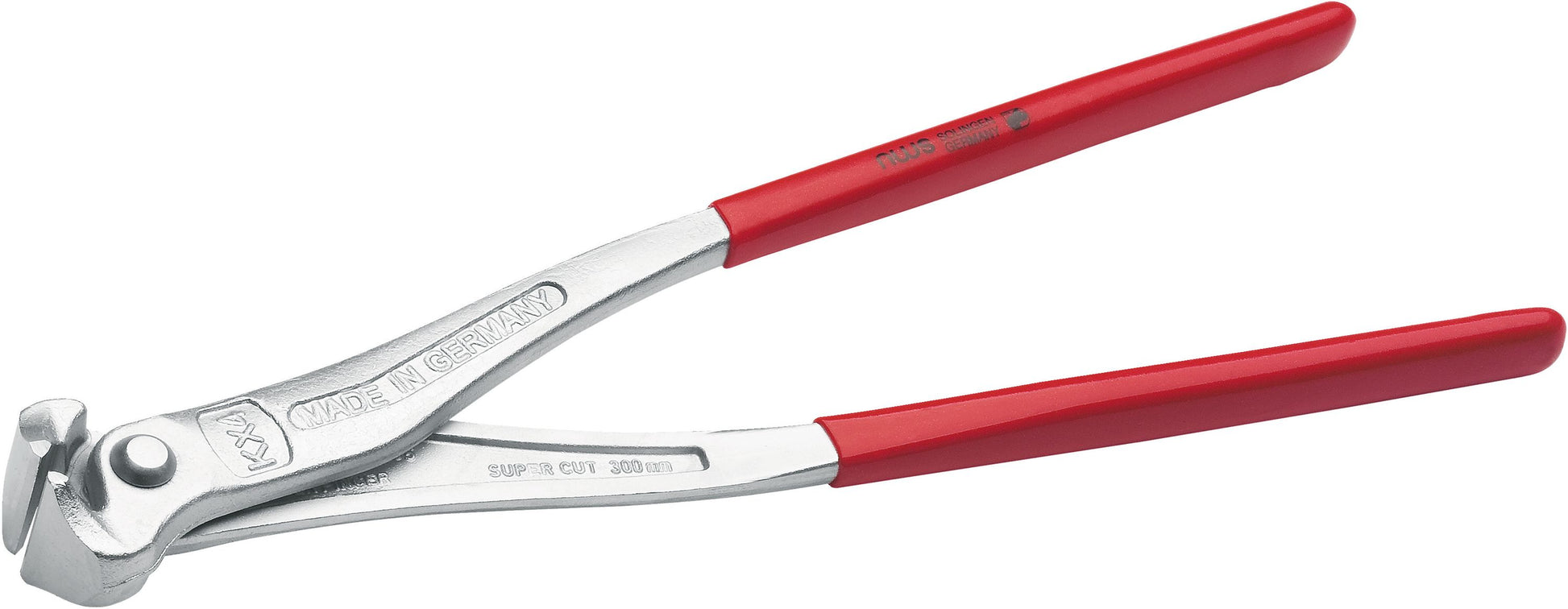 Kraft-Monierzange KX KX Solinger Flechterzange Besonders schlanke Form und nach außen gestellte Schneiden zum Binden tiefliegender Eisen und für Problemstellen Für den Einsatz an schwer zugänglichen Stellen Schnelles, zuverlässiges und kostengünstiges Verdrillen und Abschneiden des Drahtes in einem Arbeitsgang Zum Fixieren von Moniereisen mit Bindedraht von der Rolle Schneiden zusätzlich induktiv gehärtet Kraftgewerbe mit optimaler Hebelübersetzung für einfaches und ermüdungsarmes Arbeiten Enorme Schneidleistung, bis zu 45 % Kraftersparnis im Vergleich zu herkömmlichen Monierzangen Zangengewerbe elliptisch geformt um eine bestmögliche Anwendung zu gewährleisten Griffe mit Kunststoff überzogen Aus Werkzeugstahl, geschmiedet, ölgehärtet
