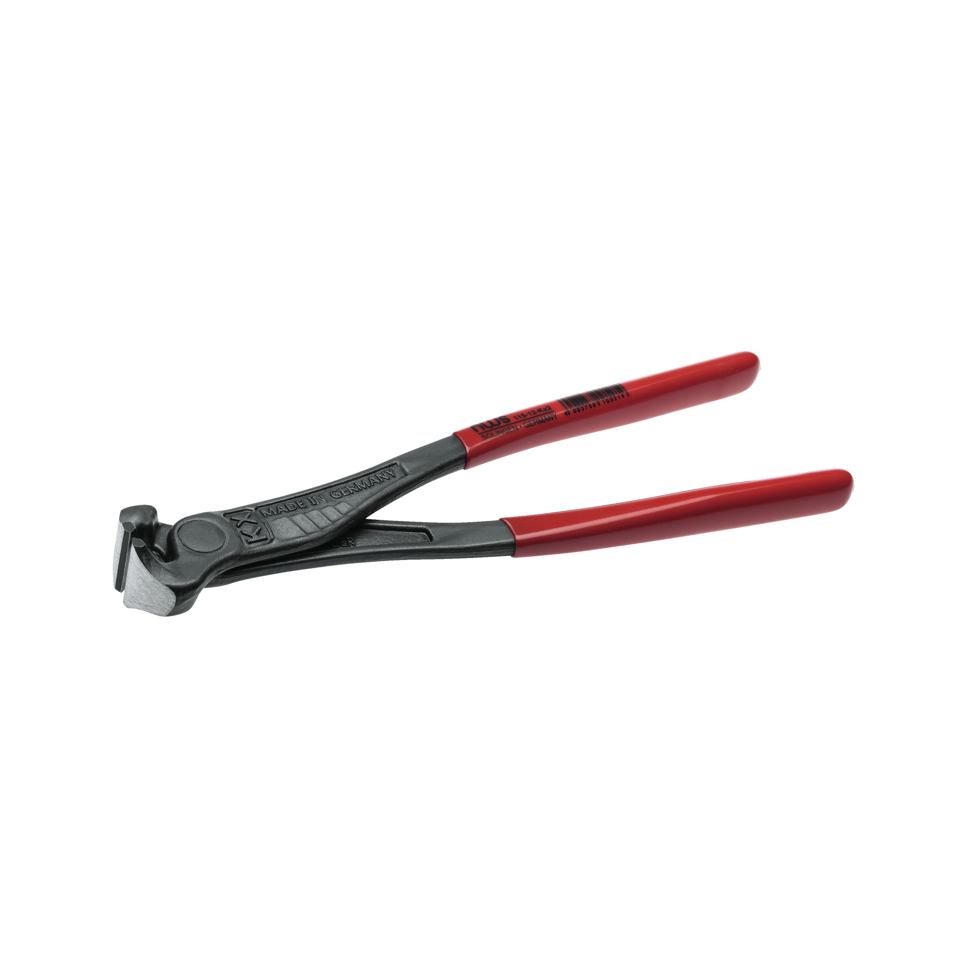 Kraft-Monierzange KX Besonders schlanke Form und nach außen gestellte Schneiden zum Binden tiefliegender Eisen und für Problemstellen KX Solinger Flechterzange Für den Einsatz an schwer zugänglichen Stellen Schnelles, zuverlässiges und kostengünstiges Verdrillen und Abschneiden des Drahtes in einem Arbeitsgang Zum Fixieren von Moniereisen mit Bindedraht von der Rolle Schneiden zusätzlich induktiv gehärtet Kraftgewerbe mit optimaler Hebelübersetzung für einfaches und ermüdungsarmes Arbeiten Enorme Schneidleistung, bis zu 45 % Kraftersparnis im Vergleich zu herkömmlichen Monierzangen Zangengewerbe elliptisch geformt um eine bestmögliche Anwendung zu gewährleisten Griffe mit Kunststoff überzogen Aus Werkzeugstahl, geschmiedet, ölgehärtet