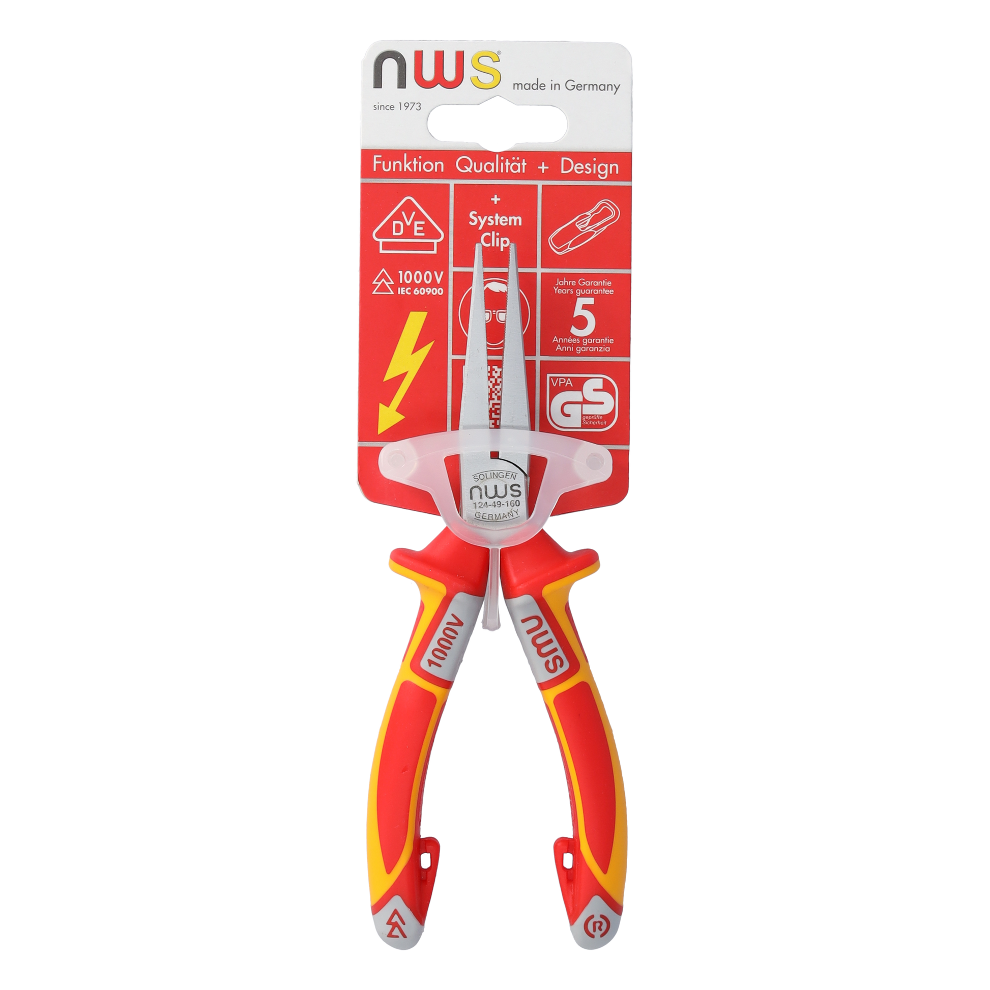 NWS Langbeck-Flachzange VDE, 160 mm | mit langen, flachen Backen | Werkzeugstahl, geschmiedet, ölgehärtet | Art. Nr. 124-49-VDE-160