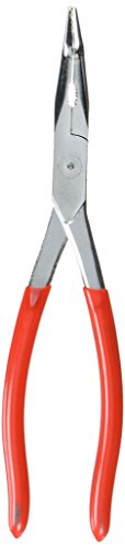 Mit langen, 40° abgewinkelten, flach-runden Backen. Greifflächen gezahnt. Spielfreier Gang. Langer Hebel für feine Arbeiten mit höherem Kraftaufwand. Mit eingelegtem Gelenk. Griffe mit Kunststoff überzogen. Aus Werkzeugstahl, geschmiedet, ölgehärtet