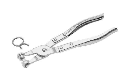 Zum Anbringen und Halten von selbstspannenden Schlauchklemmen, z.B. auf Wasserschläuchen, Waschmaschinenschläuchen usw.. Mit 360° drehbaren Backen. Schenkel aus hochfestem Walzstahl. Vernickelt