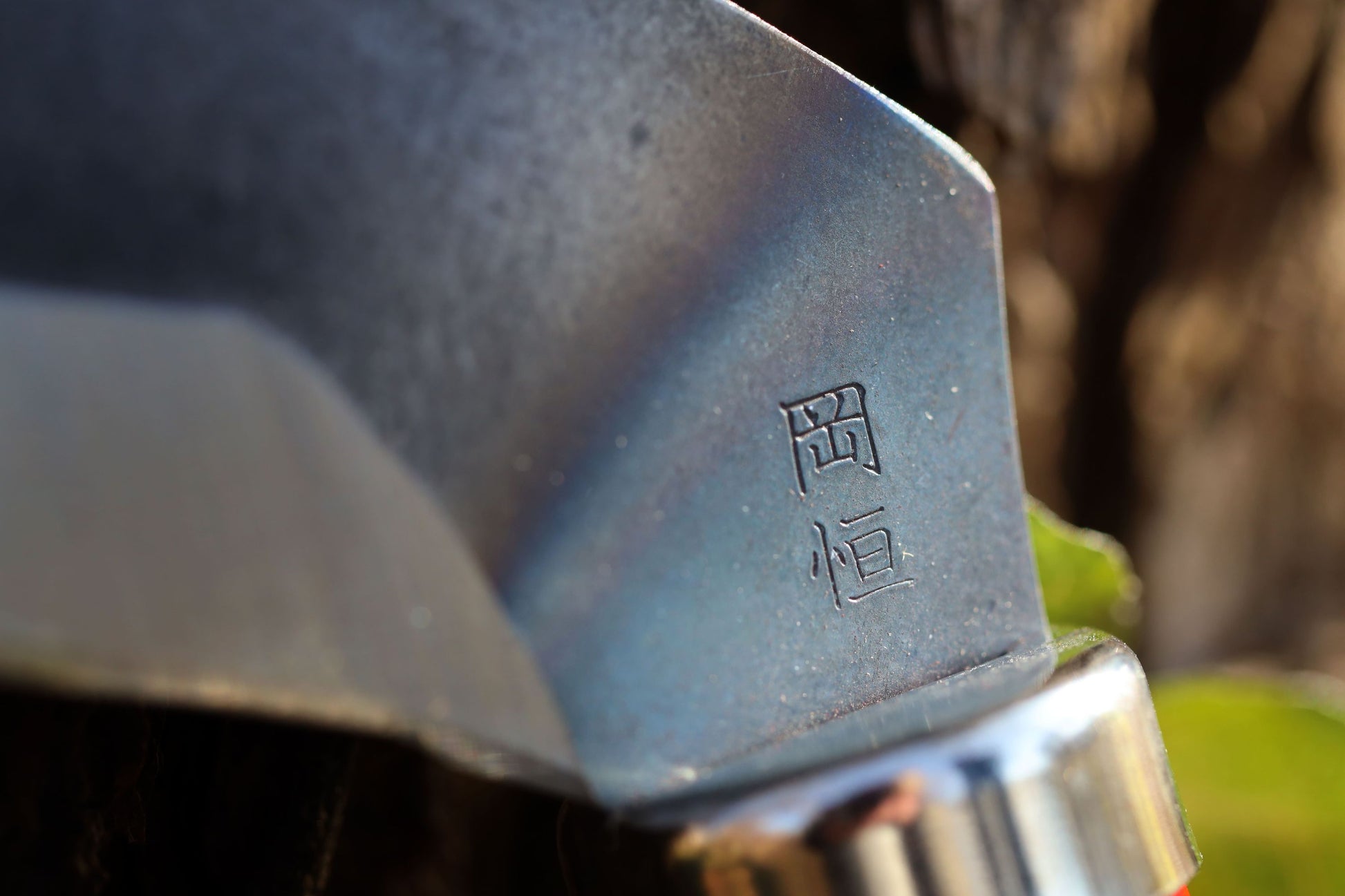 Okatsune 404 Grassichel, gekrümmte Klinge mit einer Länge von 150 mm und eine Dicke von 1,4 mm.