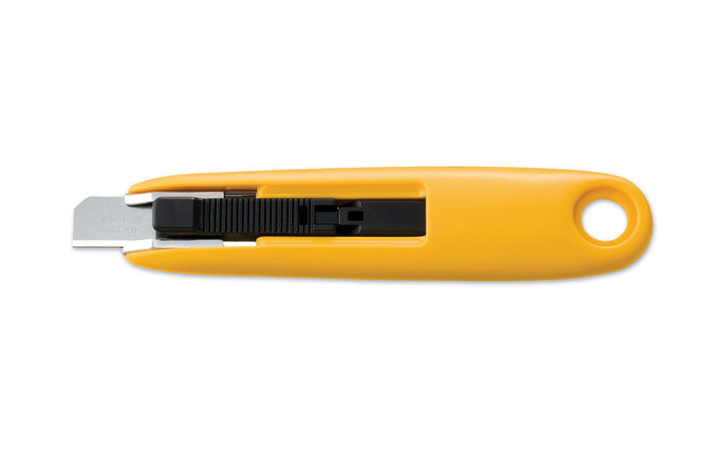 Die Sicherheits-Cuttermesser von OLFA bieten sowohl Sicherheit auf höchstem Niveau, als auch Komfort. Es gibt dabei verschiedene Sicherheitsmechanismen, die mit einer Manipulations-Sicherung geschützt sind. Bei dem Cuttermesser SK-8 schiebt sich die Klinge zurück, sobald kein Kontakt zur Schnittoberfläche mehr besteht. Cuttermesser SK-10 besitzt eine besondere Form, damit selbst bei ausgezogener Klinge die Verletzungswahrscheinlichkeit gegen 0 geht. Die restlichen Cuttermesser besitzen den Standardmechanismus: Sobald der Schieber losgelassen wird zieht sich die Klinge zurück. Dennoch liegen auch hier Unterschiede im Detail: SK-6 besitzt eine zusätzliche Schutzschiene, SK-7 ist das kompakteste Safety-Messer und SK-9 ist mit einem Packbandspalter bestückt. Der Bestseller unter den Sicherheits-Cuttermessern ist SK-4.