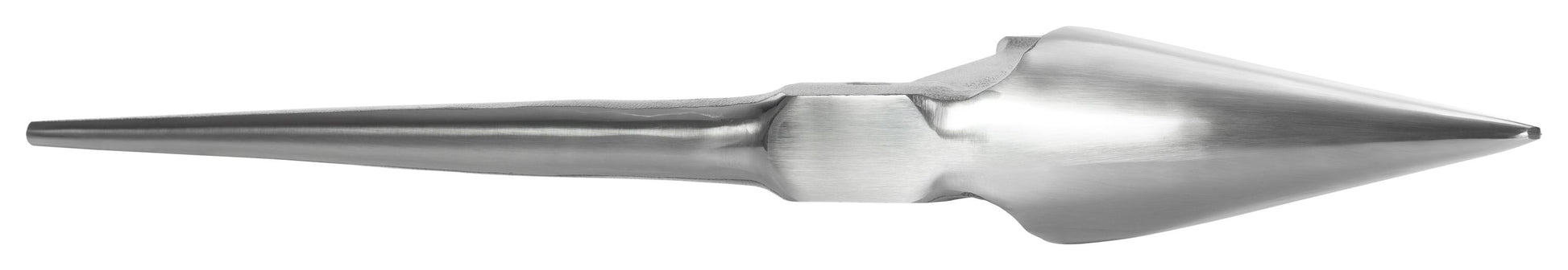 Der Sperrhaken ist ein spezielles Werkzeug, das häufig in der Schmiedekunst und insbesondere im Bereich der Rüstungsherstellung verwendet wird. Im Gegensatz zu einem herkömmlichen Amboss hat der Sperrhaken eine spezifische Form und Struktur, die ihn für bestimmte Aufgaben besonders geeignet macht. Merkmale eines Sperrhakens: Hörner: Der Sperrhaken verfügt normalerweise über zwei Hörner: eines mit einem runden Querschnitt und eines mit einem rechteckigen Querschnitt. Diese Hörner sind im Vergleich zu denen eines Ambosses sehr lang und schlank ausgebildet. Die Hörner verjüngen sich nur schwach, was bedeutet, dass sie relativ gleichbleibend in ihrer Dicke sind. Mittelteil: Der Mittelteil des Sperrhakens ist klein und geht direkt in den Stiel über. Verwendung: Der Sperrhaken ist ideal für die Formung röhrenförmiger Teile, wie sie in Arm- und Beinzeug (Teile einer Rüstung) vorkommen. Auch kleine Teile, wie Fingerteile und ähnliche Komponenten, können auf einem kleinen Sperrhaken gefertigt werden. Besonderes Modell: Trichter-Sperrhaken von Picard Rundspitze Bahn: Dies bezieht sich auf die Arbeitsfläche des Sperrhakens, die rund geformt und spitz zulaufend ist. Trichterhorn: Eines der Hörner hat die Form eines Trichters, was für bestimmte Formgebungsarbeiten besonders nützlich ist. Zusammenfassung Der Sperrhaken ist ein spezialisiertes Werkzeug für die Schmiedekunst, besonders nützlich für die Herstellung von rüstungsähnlichen und röhrenförmigen Teilen. Die schlanken, sich nur schwach verjüngenden Hörner ermöglichen präzises Arbeiten an kleinen und detaillierten Werkstücken. Das Modell von Picard mit einer rundspitzen Bahn und einem Trichterhorn bietet zusätzliche Funktionen für spezifische Anwendungen in der Metallverarbeitung.