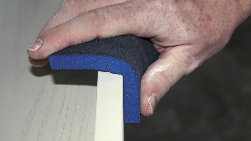 Formstabiler Schwammkörper, zweiseitig beschichtet, flexibel in der Handhabung, für profilierte Flächen, für Nass- und Trockenschliff geeignet, Profiqualität - für den Holz-, Metall- und Malerbereich geeignet,