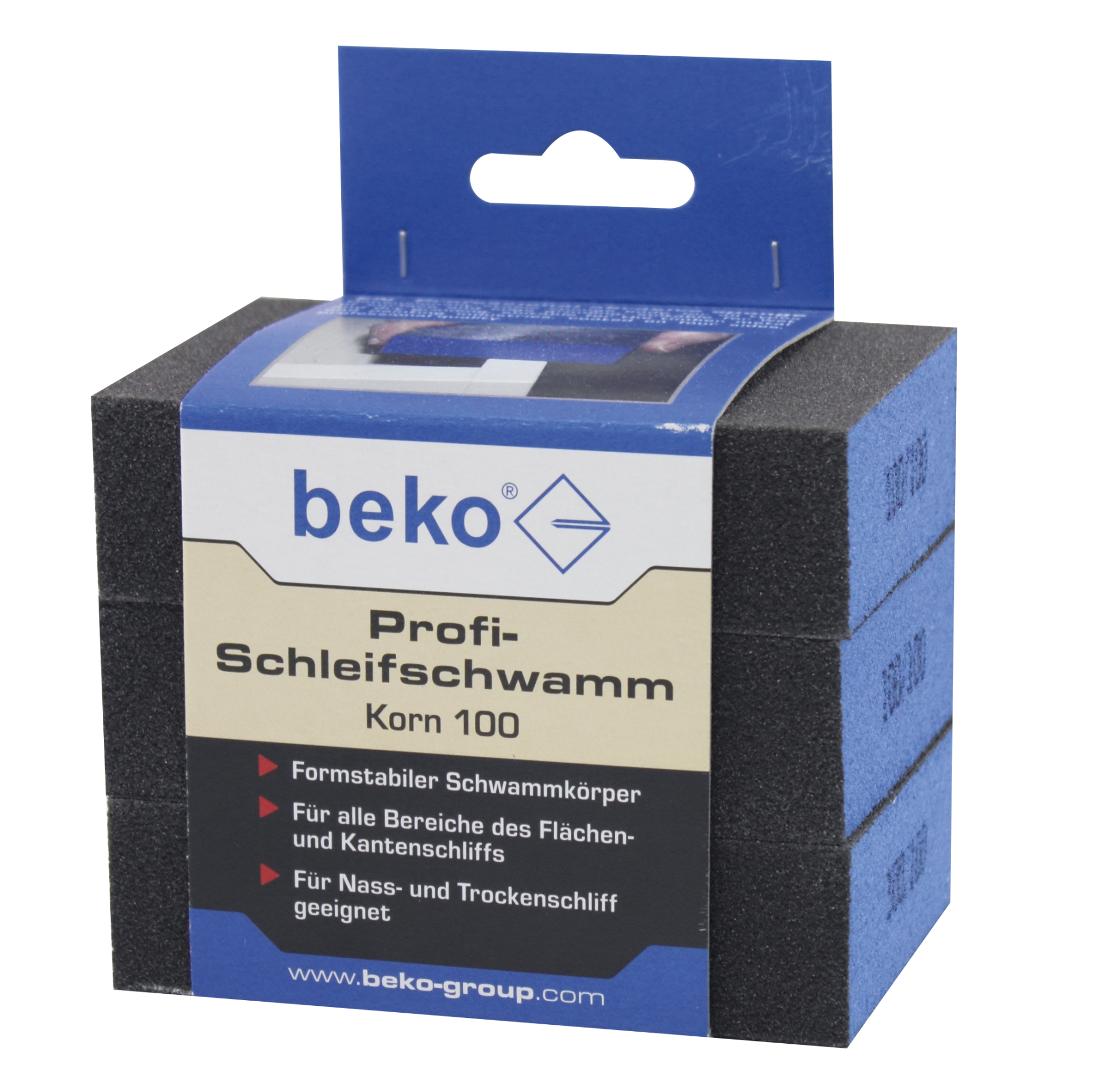 Formstabiler Schwammkörper, für alle Bereiche des Flächen und Kantenschliffs, für Nass- und Trockenschliff geeignet, Profiqualität für den Holz-, Metall- und Malerbereich geeignet, im 3er-Set erhältlich
