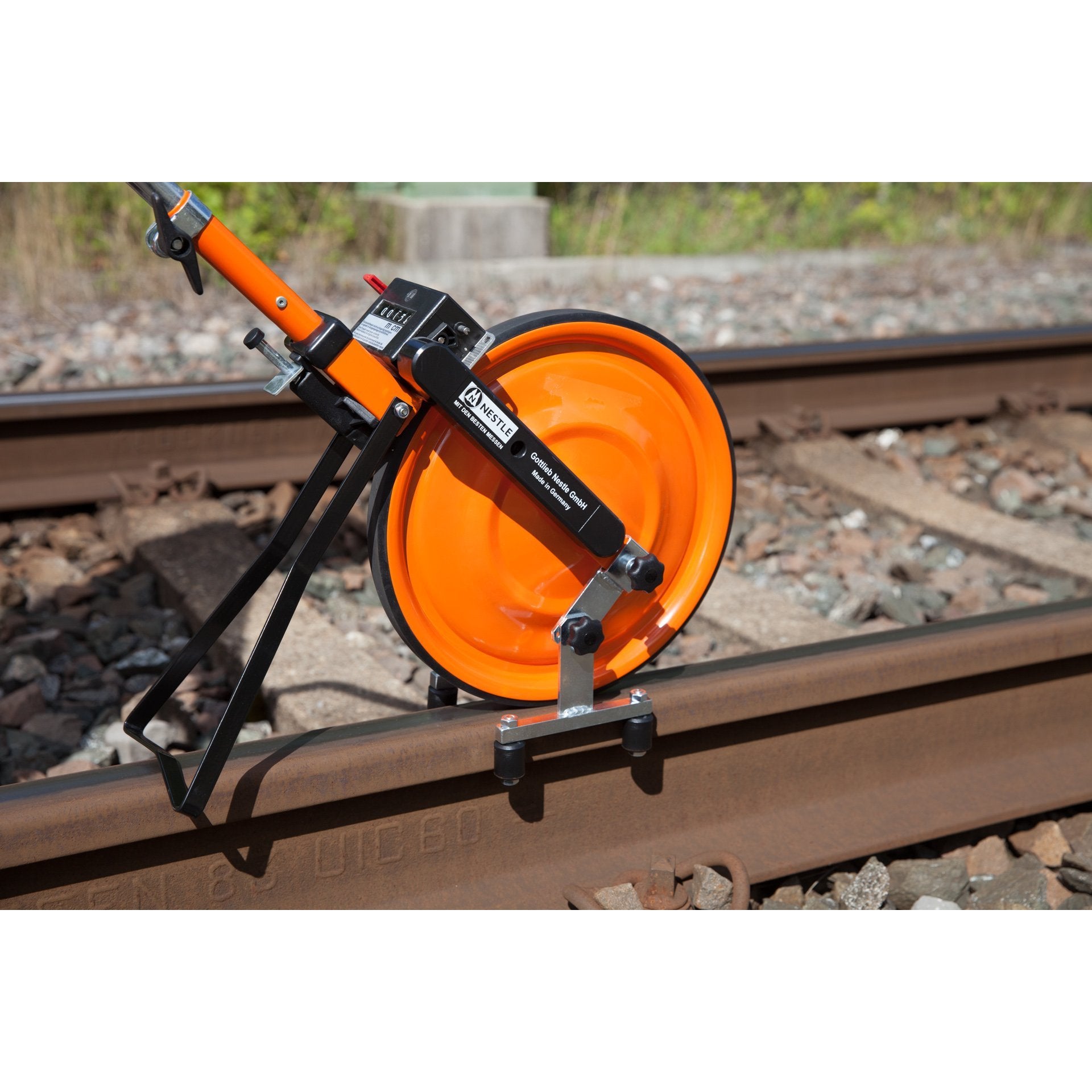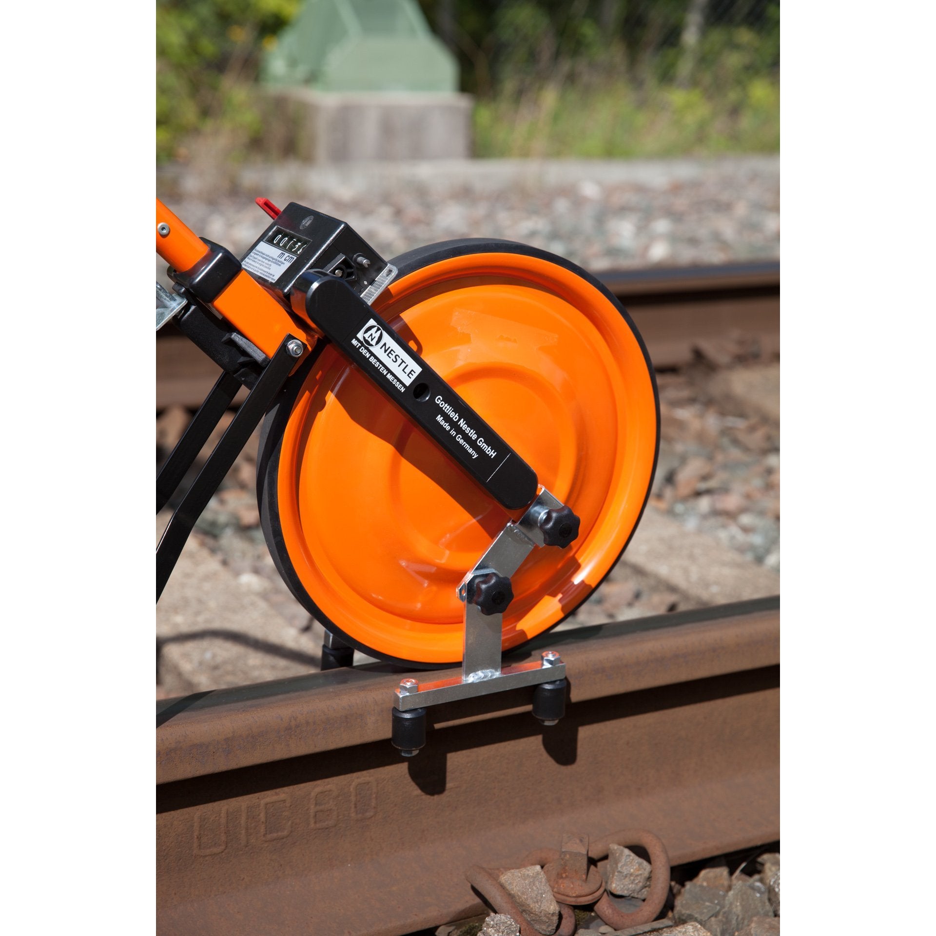 Mit der Sondereinrichtung für die Schienenvermessung wird das Messrad sicher auf den Gleisen gehalten und eignet sich damit bestens für den Gleis- und Schienenbau.