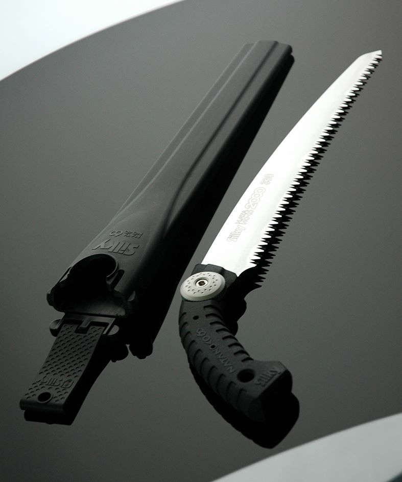 Sind Sie auf der Suche nach eine Zugsäge mit gebogenem Blatt, aber finden die Kurve der Zübat, mit 650 Grad Radius zu extrem? Dann wird die Natanoko 2000 mit ihrem leicht gebogen Sägeblatt und Radius von 2000, Ihre Säge sein. Die Säge ist der Bruder der Bigboy 2000 in der Kategorie der festen Sägen. Das kräftige Sägeblatt hat eine hohe Stabilität und eine extra grobe Verzahnung. Damit sägen Sie mühelos durch dicke Baumstämme. Der komfortabler Gummigriff absorbiert Schwingungen und bietet einen guten Halt. Durch das drehen des Drehknopfes kann das Blatt, ohne Werkzeuge, innerhalb von Sekunden, einfach ersetzt werden. Der Köcher ist so entwickelt worden, dass die Säge unter keinen Umständen herausfallen kann, selbst wenn Sie sich während des Kletterns in schwierigen Positionen befinden. Sobald Sie die Säge benötigen, können Sie diese mit nur einer Hand aus dem Köcher ziehen, indem Sie mit dem Daumen auf die Taste an der Seite zu drücken. Vergessen Sie nicht, die verfügbare Beingurte zu bestellen, damit Sie die Säge immer dabei haben. Der Name Natanoko ist eine Zusammensetzung von dem japanischem Wort ?Axt? (nata) und ?Handsäge? (noko).