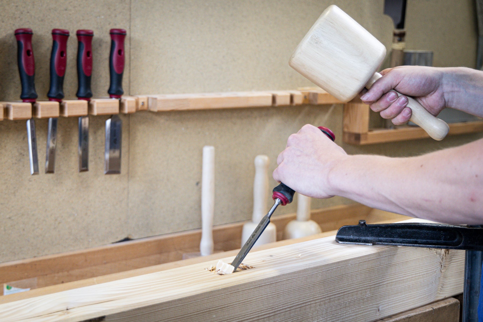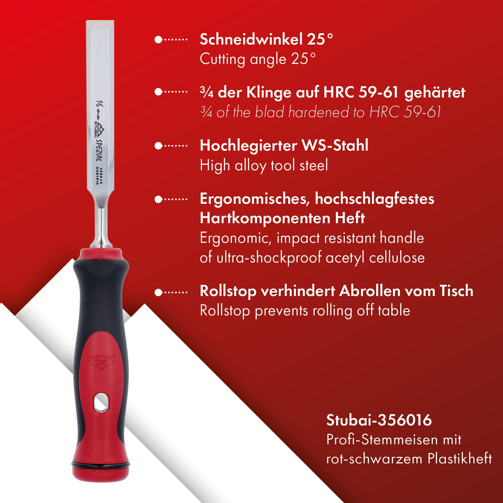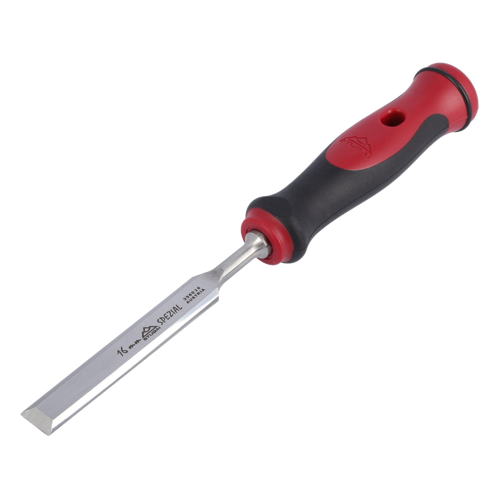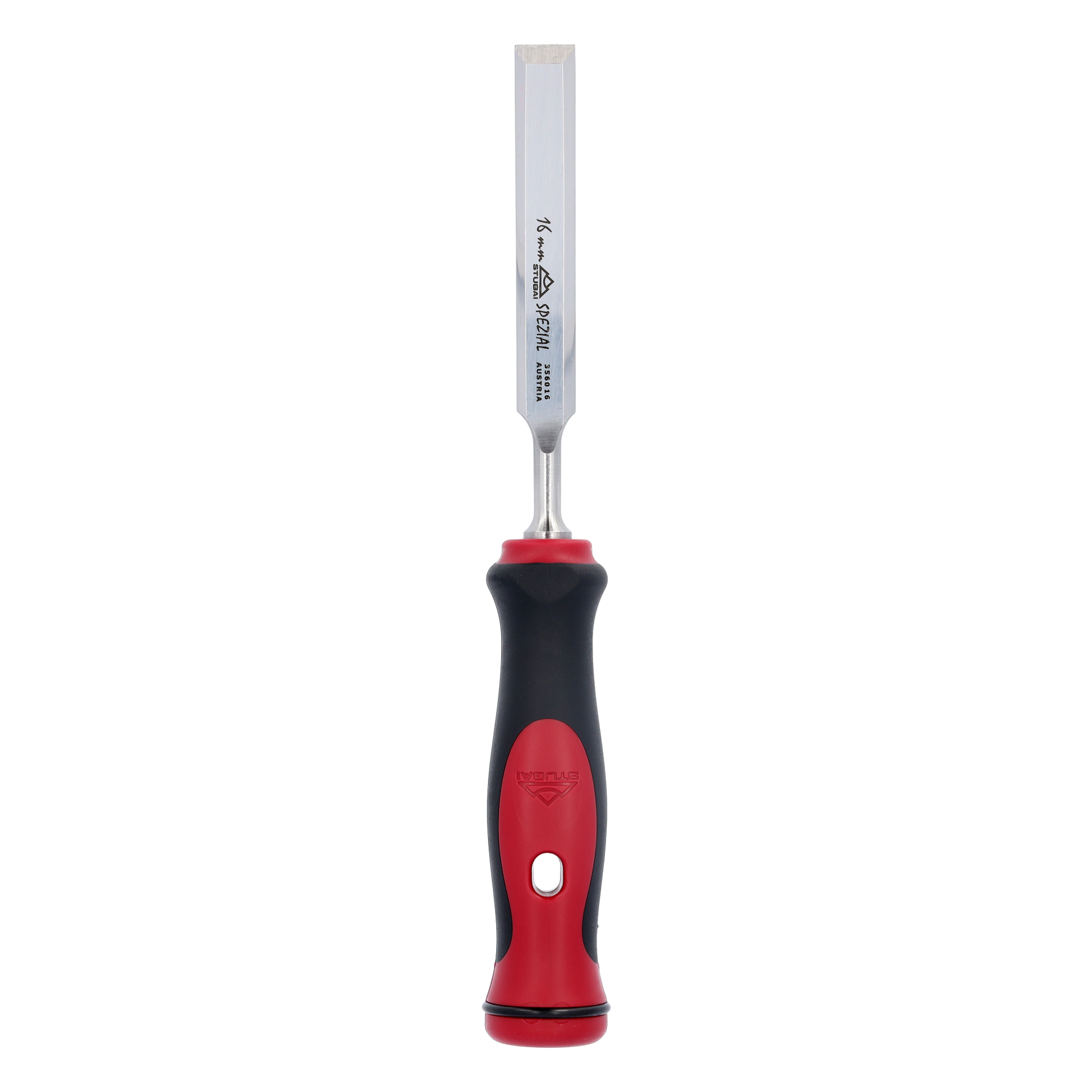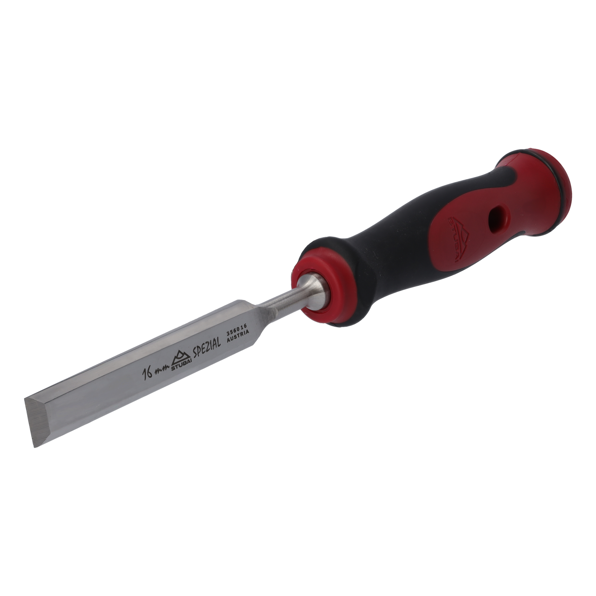 Stemmeisen mit rot-schwarzem 2K-Griff, 16mm, STUBAI Profi Stechbeitel zur präzisen Holzbearbeitung, Stecheisen für Schreiner Tischler